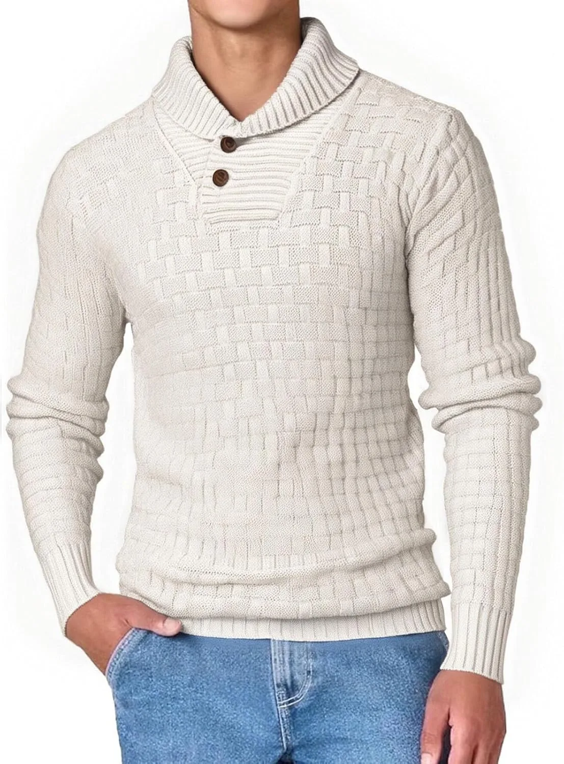 Сочетание с одеждой --- Этот мужской свитер дополнит любой образ, сочетаясь с куртками, рубашками, джинсами, пальто, чиносами, блейзерами и так далее, создавая как повседневный, так и стильный образ.
