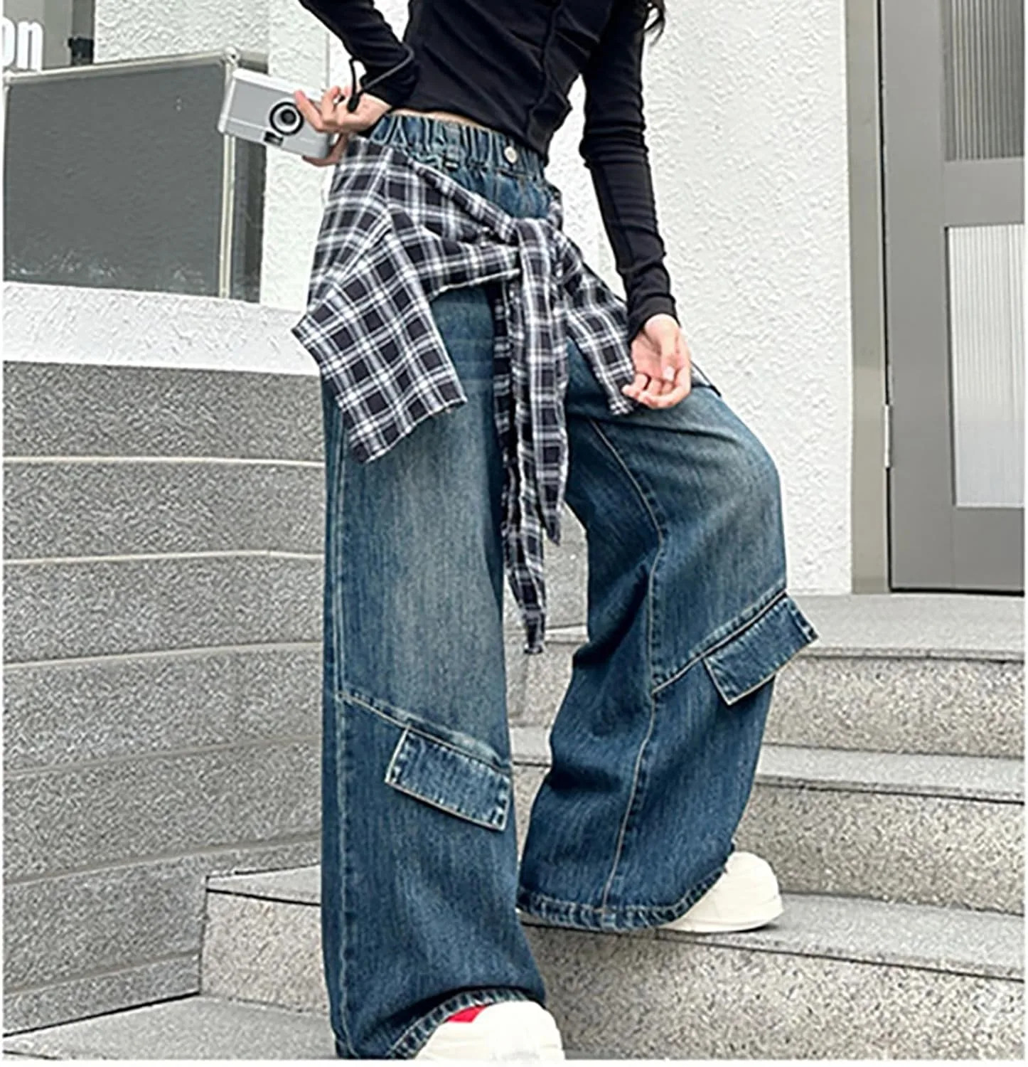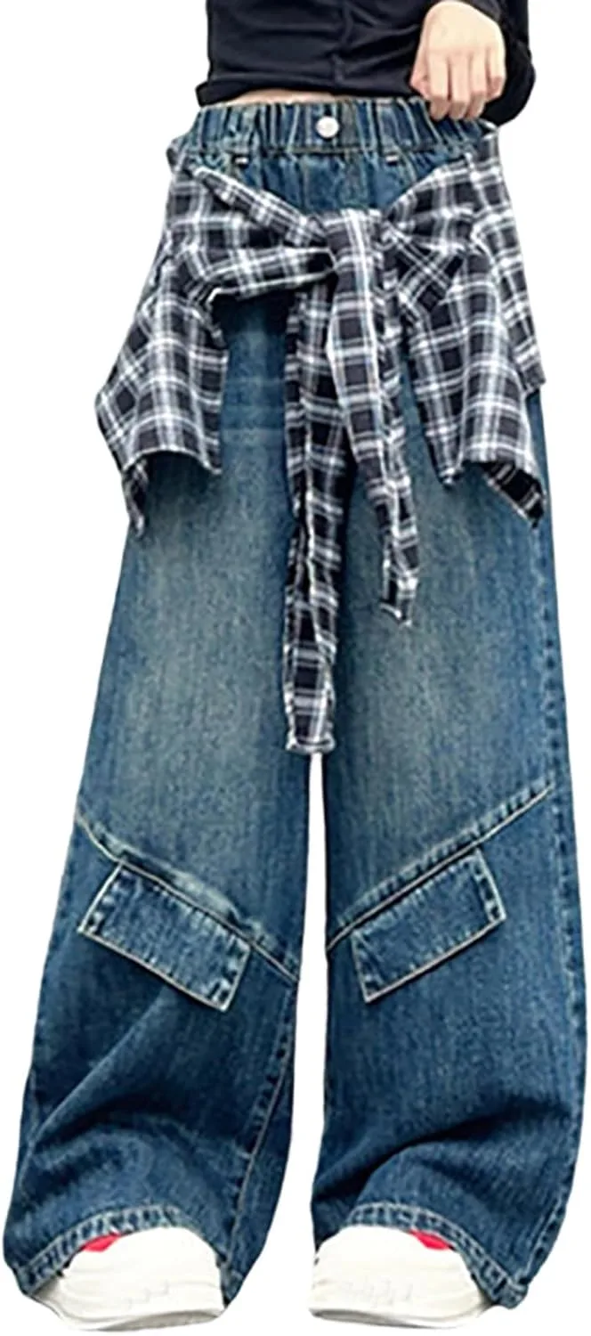 Материал: Эластичная джинсовая ткань с мягкой текстурой для комфорта движений. Дизайн: высокая талия и широкие штанины для создания образа в стиле стритвеар 2000-х. Особенность: Эластичный пояс позволяет легко надевать брюки без застежек. Повод: Подходит для повседневной носки, школьных экскурсий или мероприятий на выходных для подростков. Уход: Машинная стирка в холодной воде, вывернув наизнанку, сушка в сушилке при низкой температуре.