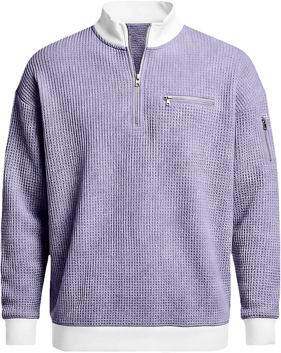 【Высококачественная вафельная трикотажная ткань】Этот мужской пуловер с застежкой-молнией на четверть длины, изготовленный из высококачественной ребристой вафельной трикотажной ткани, напоминающей вельвет, мягкий, прочный, дышащий и эластичный, обеспечивает длительный комфорт и свободу движений.