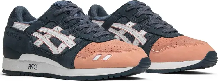 Чтобы отпраздновать открытие магазина Kith в Нью-Йорке в 2011 году, основатель Ронни Файг объединился с ASICS, чтобы выпустить эту темно-синюю и лососевую версию Gel-Lyte 3. Цветовая гамма «Salmon Toes» сочетает в себе двойную блокировку цвета на верхней части с белым ASICS Tiger. полосы. Замшевая конструкция покрывает неопреновый внутренний рукав с разделенным язычком, а гелевая технология японского бренда добавляет амортизацию межподошве.