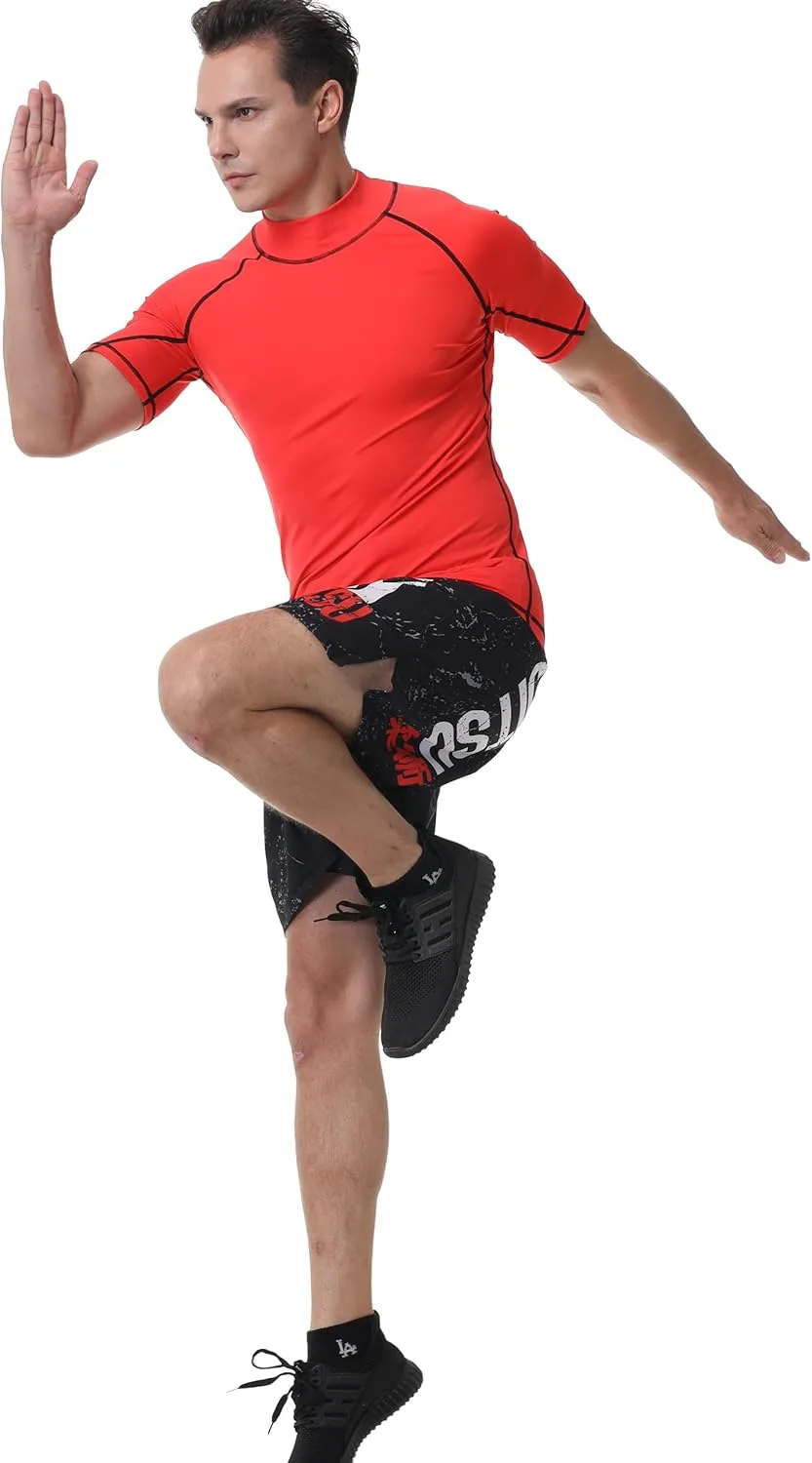 Мужская компрессионная футболка с высоким воротником Red Plume, быстро сохнущая, для бега и велоспорта