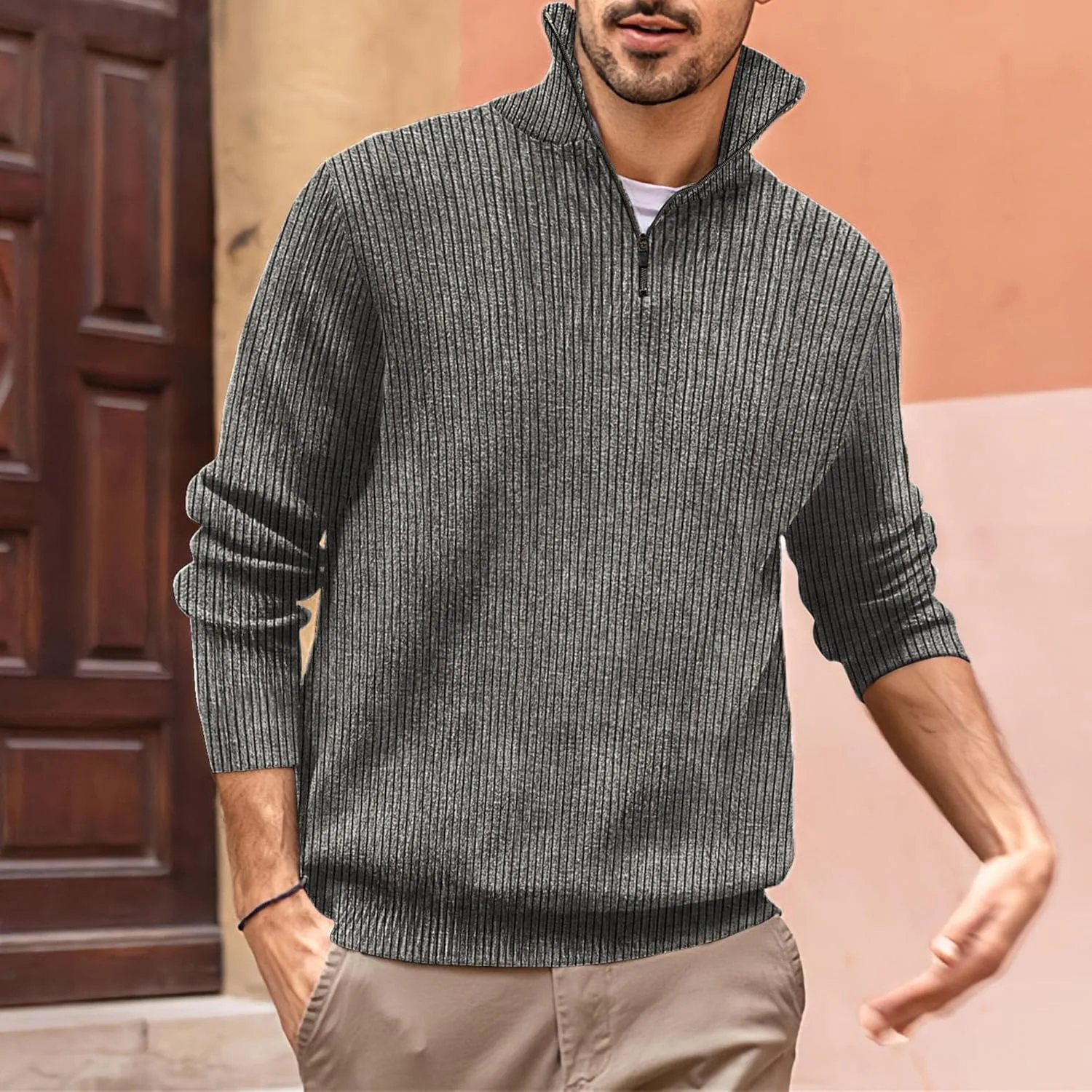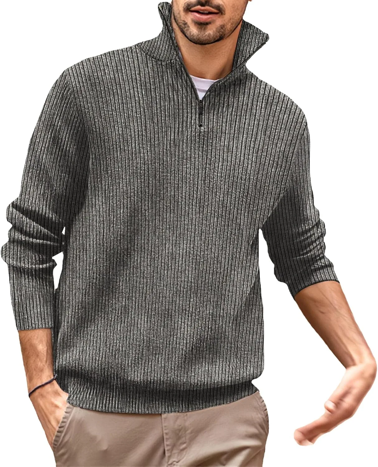 Мужской вязаный свитер с застежкой-молнией на четверть длины изготовлен из смесовой ткани с косами, это теплая, мягкая и приятная на ощупь ткань. Она обеспечит вам уют в холодные зимние месяцы.