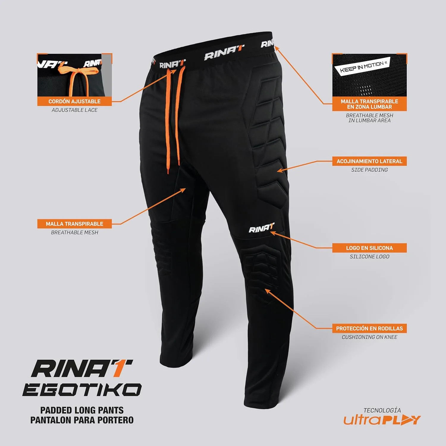 Rinat Padded Soccer Compression Leggings, Black Performance Polyester