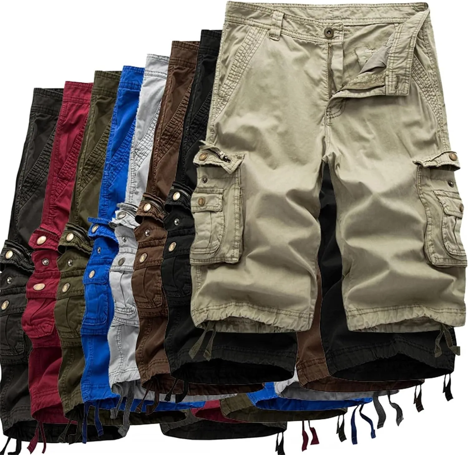 Мужские шорты карго летние casual solid color multi-pocket plus size