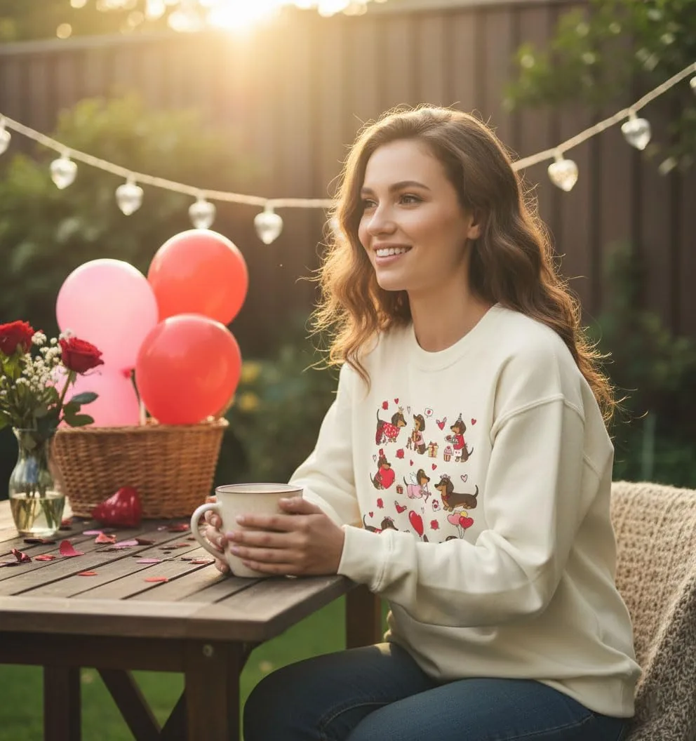 Свитшот с милым таксой и сердечками Czbic