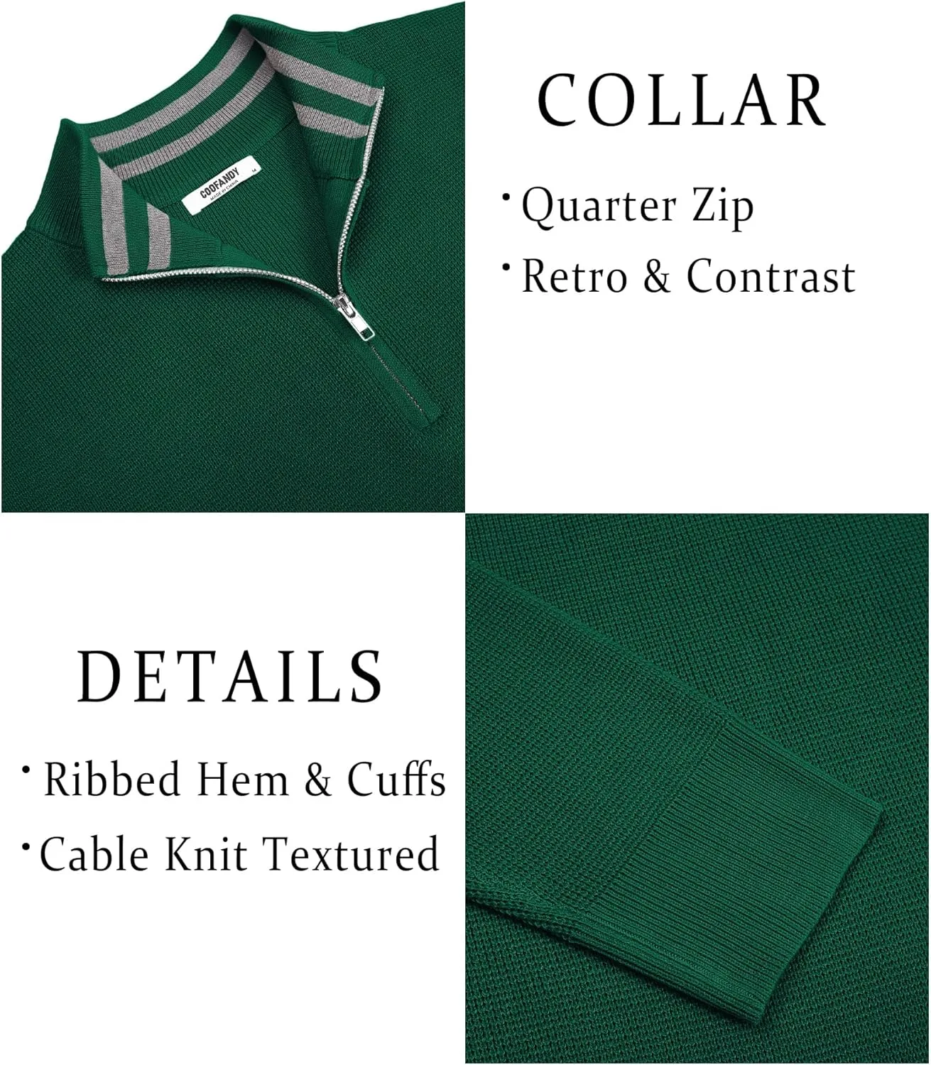 Высококачественная ткань: Мужской пуловер с застежкой-молнией на четверть длины изготовлен из мягкой, приятной для кожи и дышащей трикотажной термоткани, обеспечивающей комфорт в умеренную погоду и тепло в холодные месяцы, идеально подходит как для повседневной, так и для деловой обстановки.