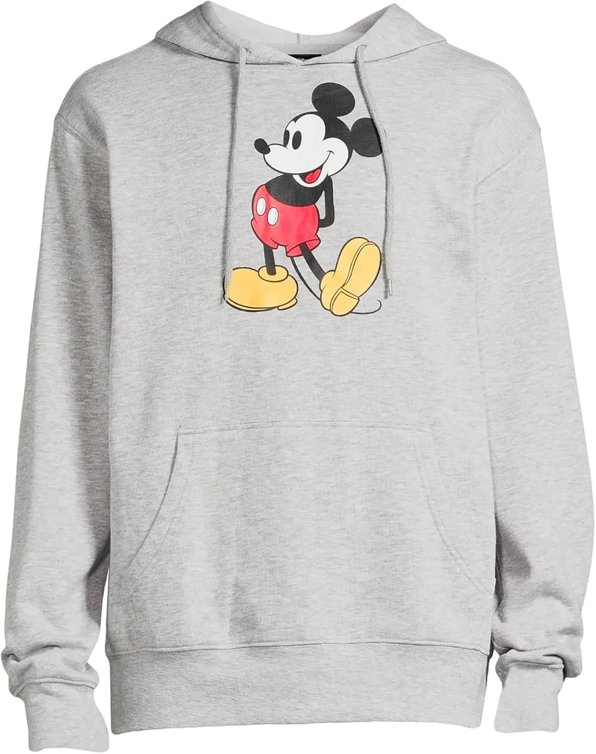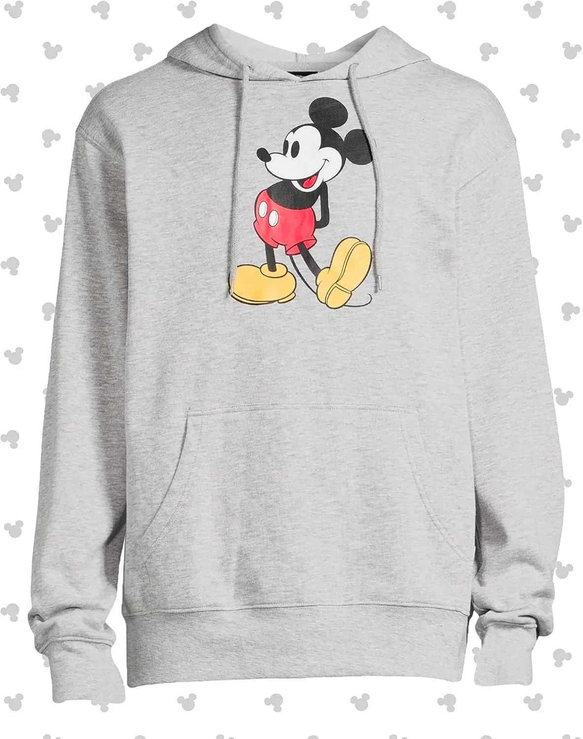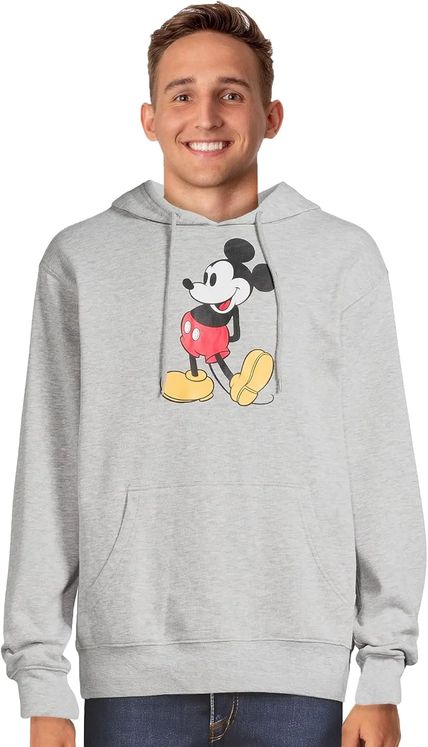 Эта мужская флисовая толстовка украшена полноразмерным изображением Микки Мауса в традиционной позе — руки за спиной, пятка приподнята — на светло-сером фоне. Дизайн создает лаконичный, сбалансированный образ, который сочетается со спортивными брюками, джинсами или повседневными штанами. Мягкий, но при этом плотный флис обеспечивает надежное тепло, не создавая лишнего объема.