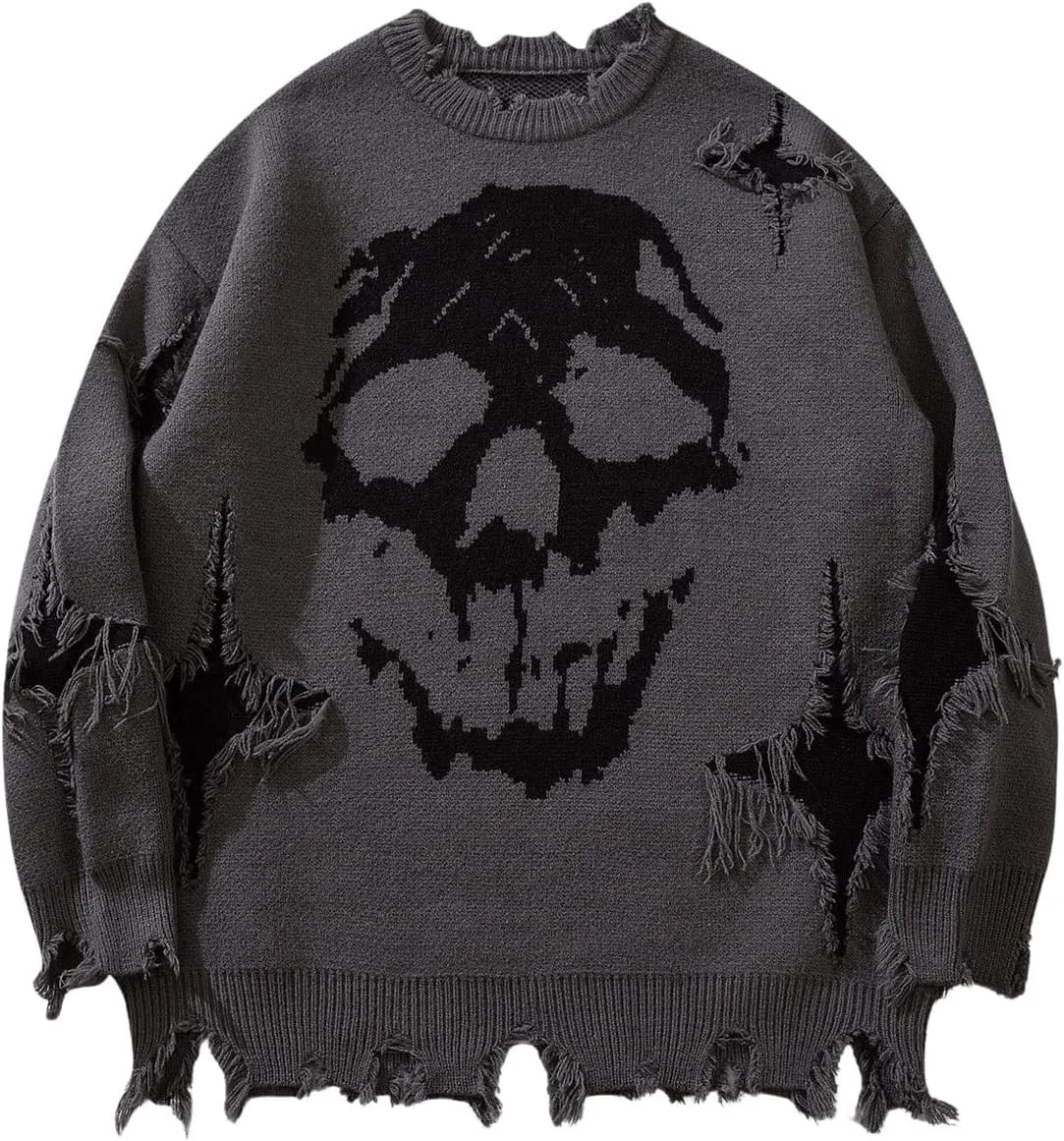 Мужской свитер с черепом в готическом стиле Y2K Grunge Oversized BEAUDRM