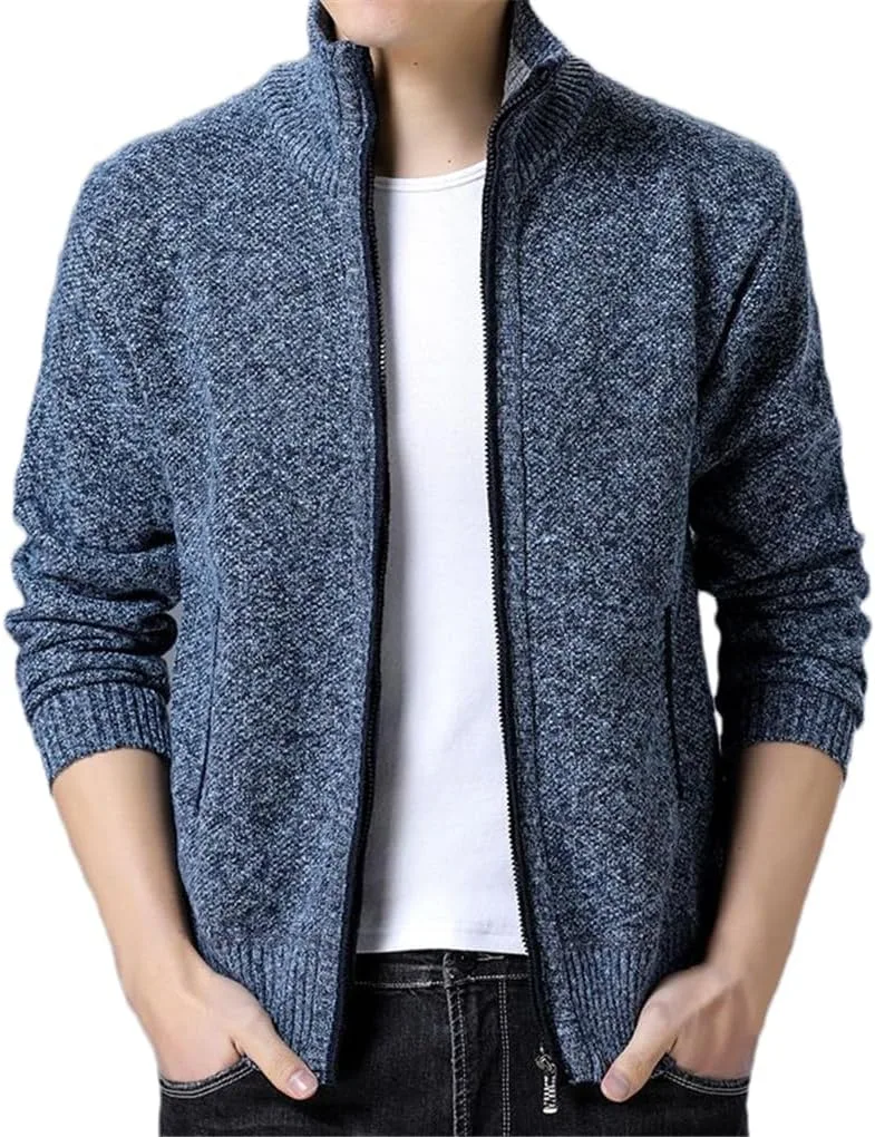 Мужской кардиган на молнии из мягкой, эластичной вязки. Приталенный крой, воротник-стойка, длинные рукава, ребристый низ и манжеты обеспечат вам тепло.