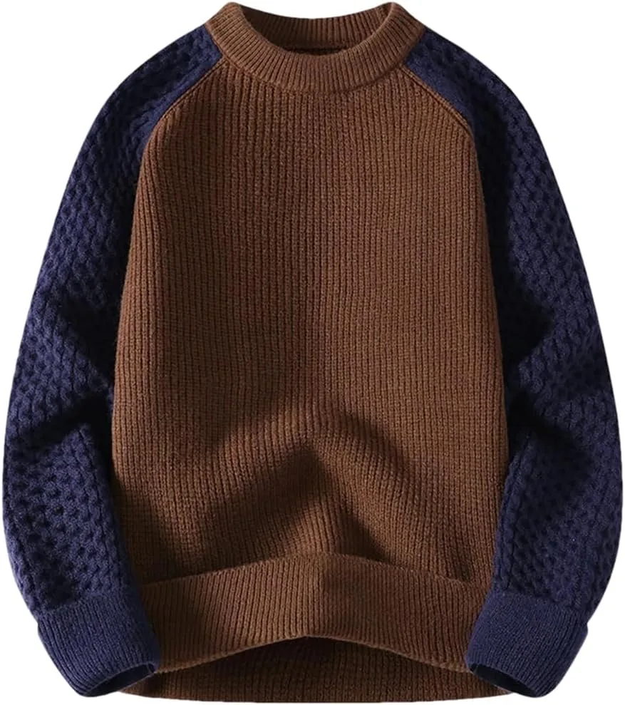 Уникальный дизайн: круглый вырез, длинные рукава, сочетание цветов, свитер-пуловер, мягкий и плотный, легкий и удобный, свободный повседневный стиль.