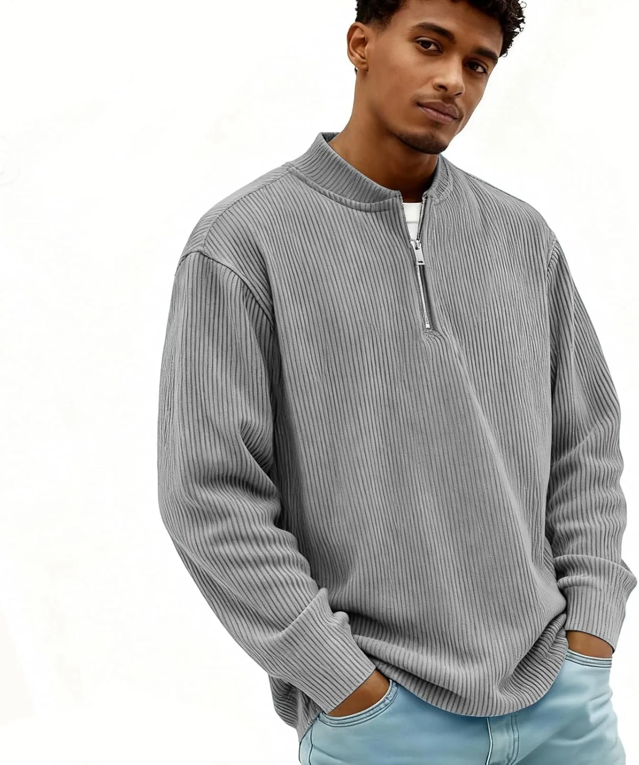Детали пуловера с застежкой-молнией на четверть длины: Практичная застежка-молния на четверть длины. Частичная молния позволяет легко регулировать горловину для вентиляции и комфорта, добавляет изысканности повседневному стилю и делает ношение пуловера удобным.