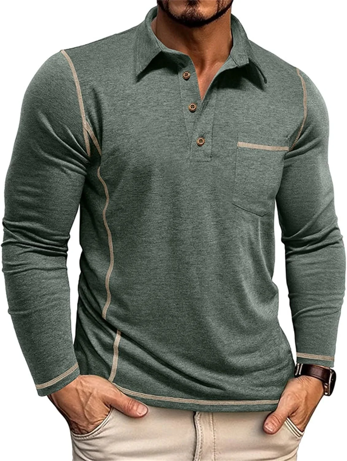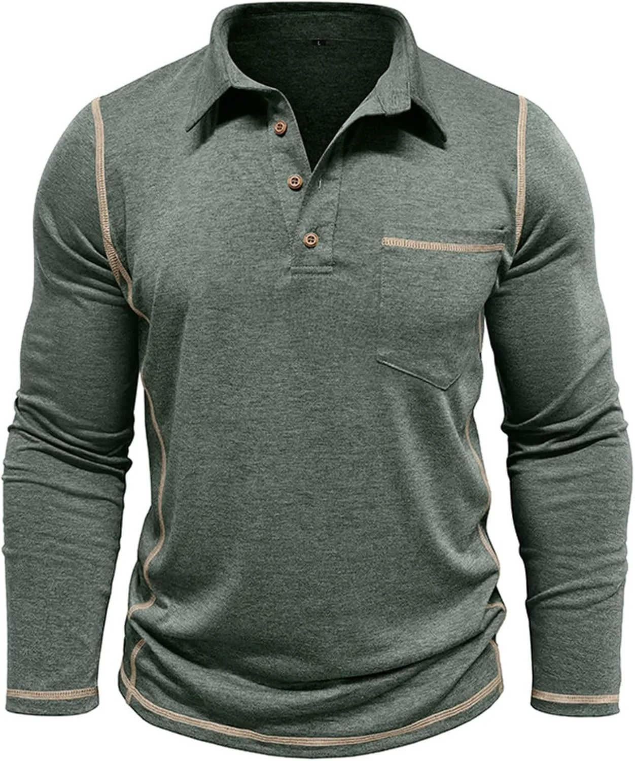 Дизайн: Повседневные мужские поло с изысканным классическим контрастным цветом внутри воротника и планки, которые придадут вам стильный вид. Застежка на пуговицы и воротник с лацканами, классический крой с длинными рукавами и мягкая ткань делают эти мужские футболки с длинными рукавами идеальным выбором для офиса или выходных.