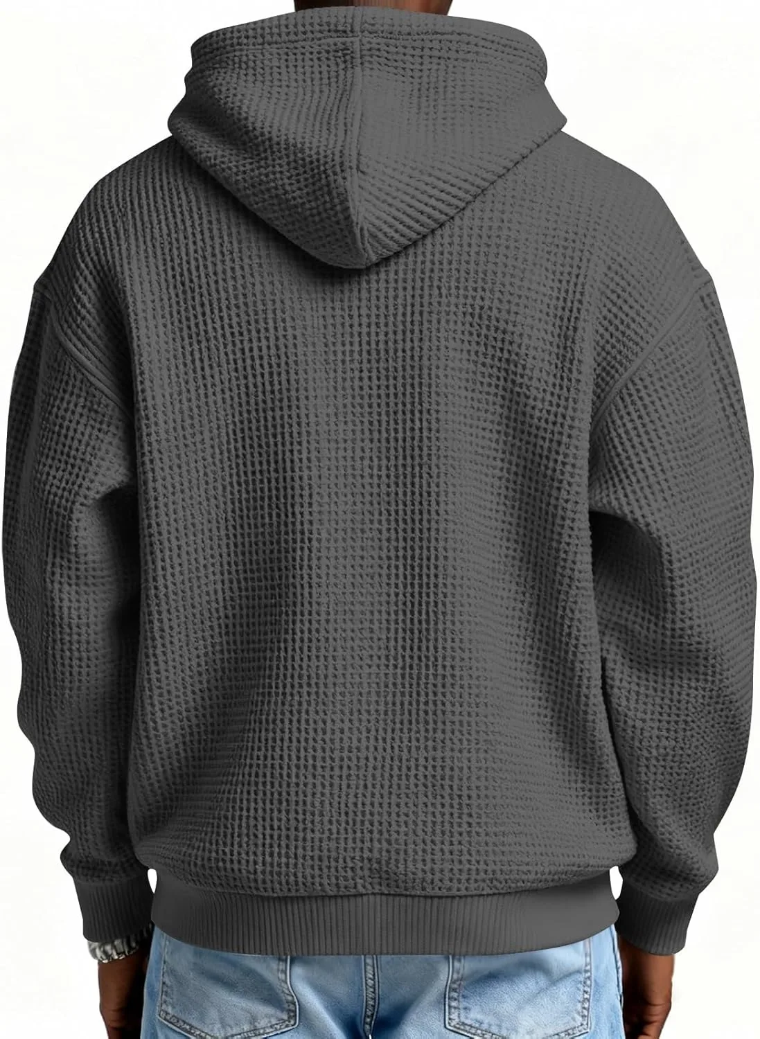【Высокое качество】:Изготовленная из высококачественной мягкой вафельной трикотажной ткани с дышащей хлопковой смесью, мужская толстовка больших размеров с вафельным рисунком обеспечивает исключительный комфорт, тепло и отвод влаги. Высококачественный материал не образует катышков, легкий и приятный для кожи — идеально подходит для ношения в течение всего дня в прохладную погоду или в качестве уютного дополнительного слоя.