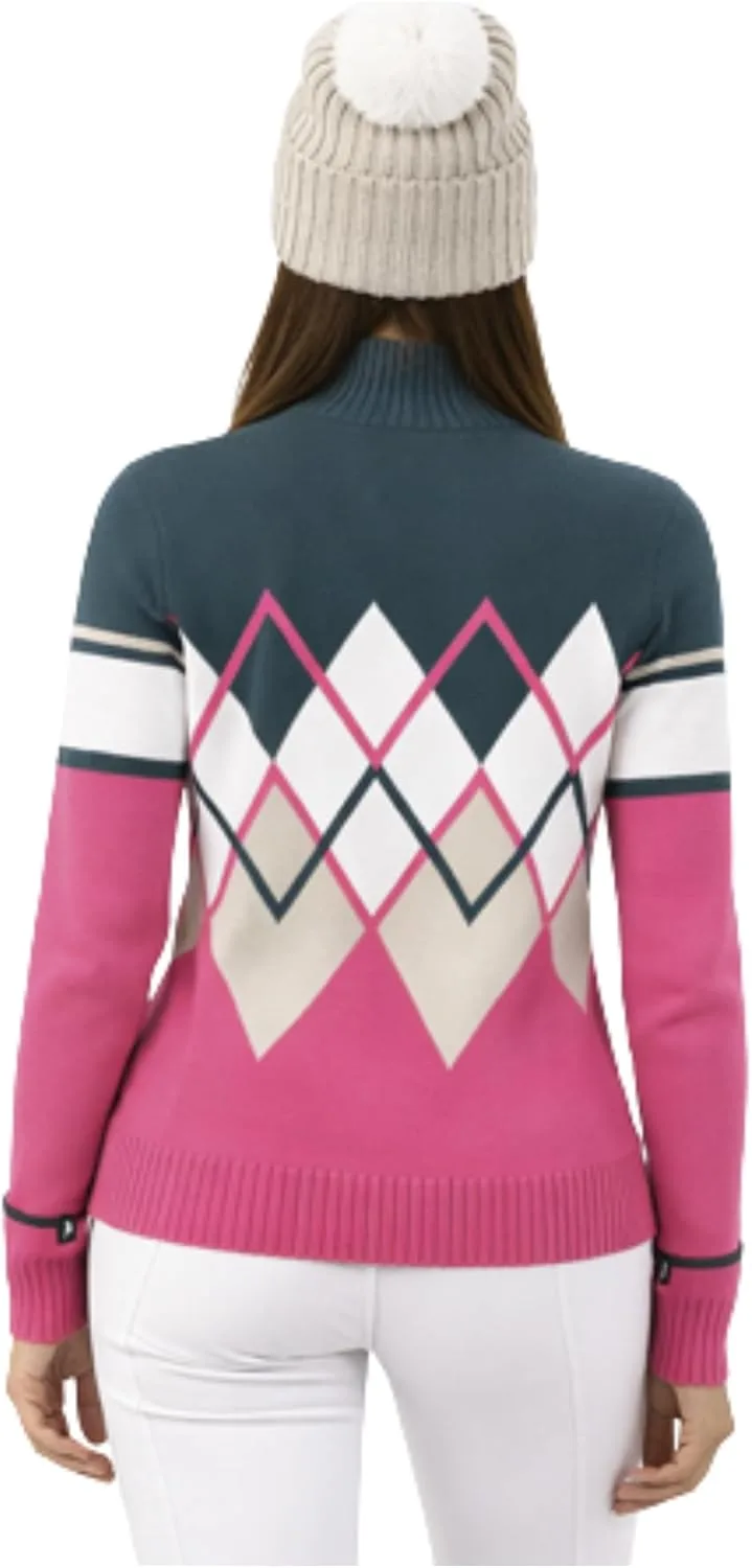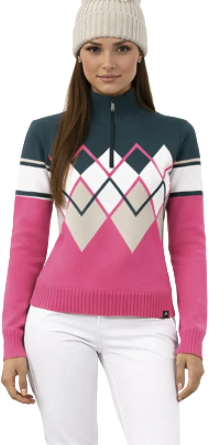 РОСКОШНАЯ МЕРИНОСОВАЯ ШЕРСТЬ: Изготовлено из 100% мериносовой шерсти, что обеспечивает исключительную мягкость, естественное тепло и комфорт в течение всего дня в условиях холодной погоды. ОТ АПРЕ-СКАЙ ДО ПОВСЕДНЕВНОЙ НОСКИ: Создано для того, чтобы легко переходить от встреч после катания на лыжах к неформальным прогулкам и повседневной носке, придавая образу элегантность и женственность. МОДНЫЙ ВЯЗАНЫЙ ДИЗАЙН: Отличается смелым зигзагообразным узором в виде ромбов и облегающим силуэтом, создающим современный спортивный образ. ЗАСТЕЖКА-МОЛНИЯ НА ЧЕТВЕРТЬ ДОЛЛАРА: Формованная застежка-молния SAB на четверть длины обеспечивает универсальность при многослойной одежде и регулировании температуры, а также подчеркивает высокое качество отделки пуловера. ДЕТАЛИ ПРЕМИАЛЬНОЙ РЕБРИСТОЙ РАБОТЫ: Ребристые манжеты на поясе, рукавах и воротнике обеспечивают форму, комфорт и изысканный вид, сохраняя при этом форму изделия.