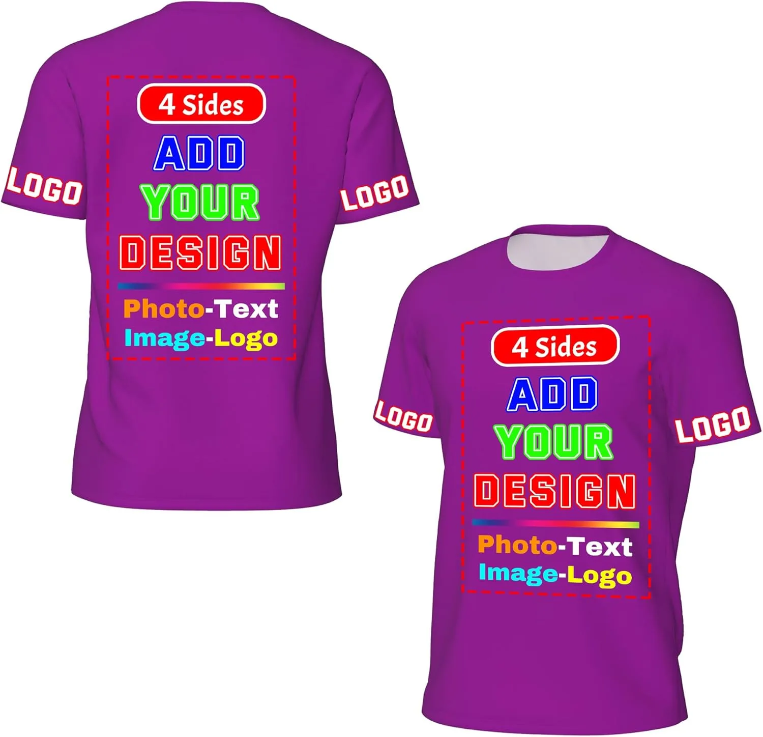 Нажмите «Настроить сейчас», чтобы начать персонализацию футболки. Вы можете настроить переднюю/заднюю часть/рукав. Можно добавить фотографию/логотип/текст/изображение. Для обеспечения высокого качества изготовления футболки, пожалуйста, загрузите изображение высокого качества, размером не менее 1200 x 1200 пикселей, в формате PNG или JPG.