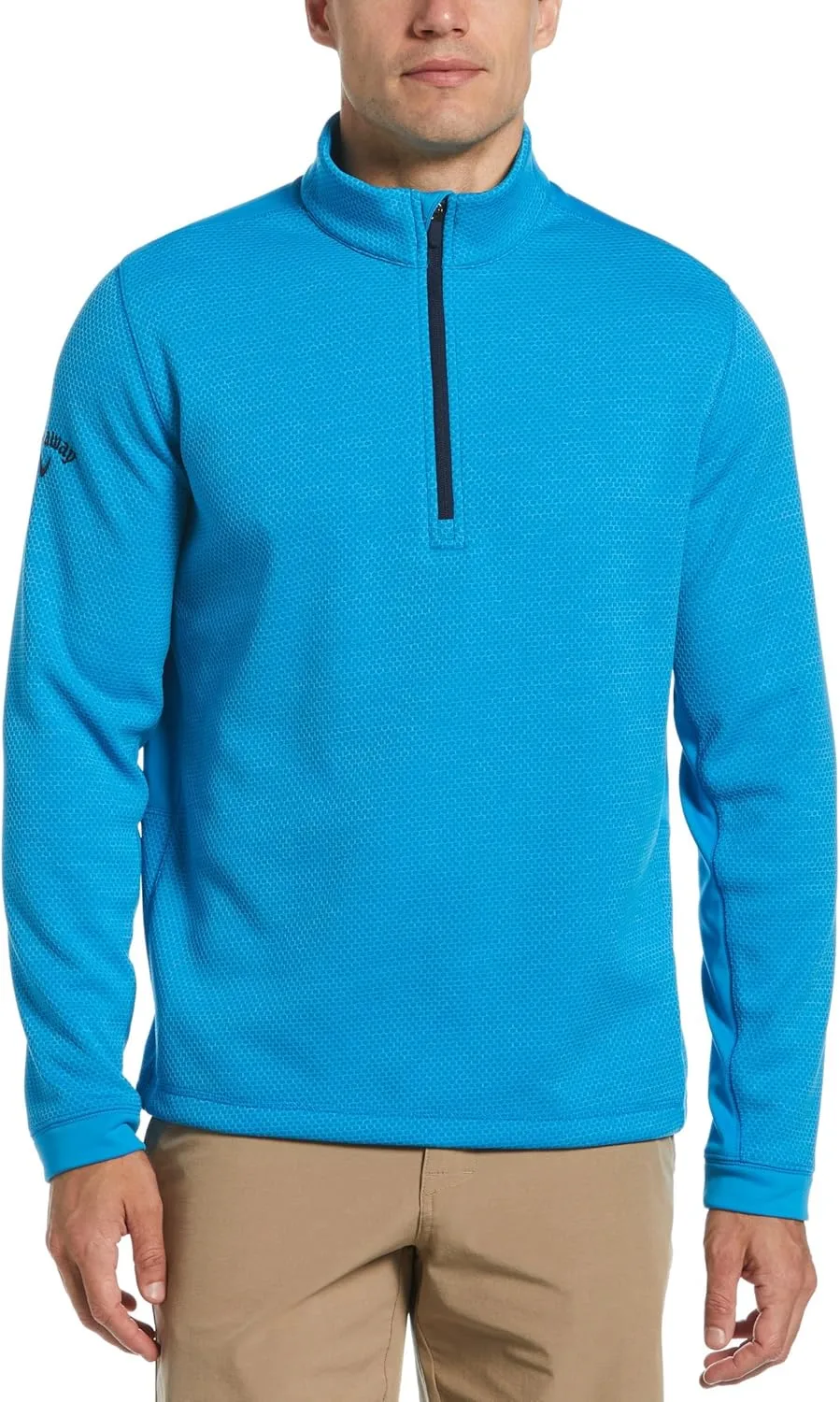 Для ощущения тепла и сухости на поле для гольфа выберите этот мужской пуловер Callaway. Разработанный с учетом теплоизоляционных свойств, этот пуловер также оснащен технологией отвода влаги Opti-Dri™. Прочная ткань двойного плетения с шестиугольным узором добавляет текстуры и изготовлена из переработанных материалов, что делает этот топ практичным и экологичным дополнением к вашему гардеробу для гольфа.