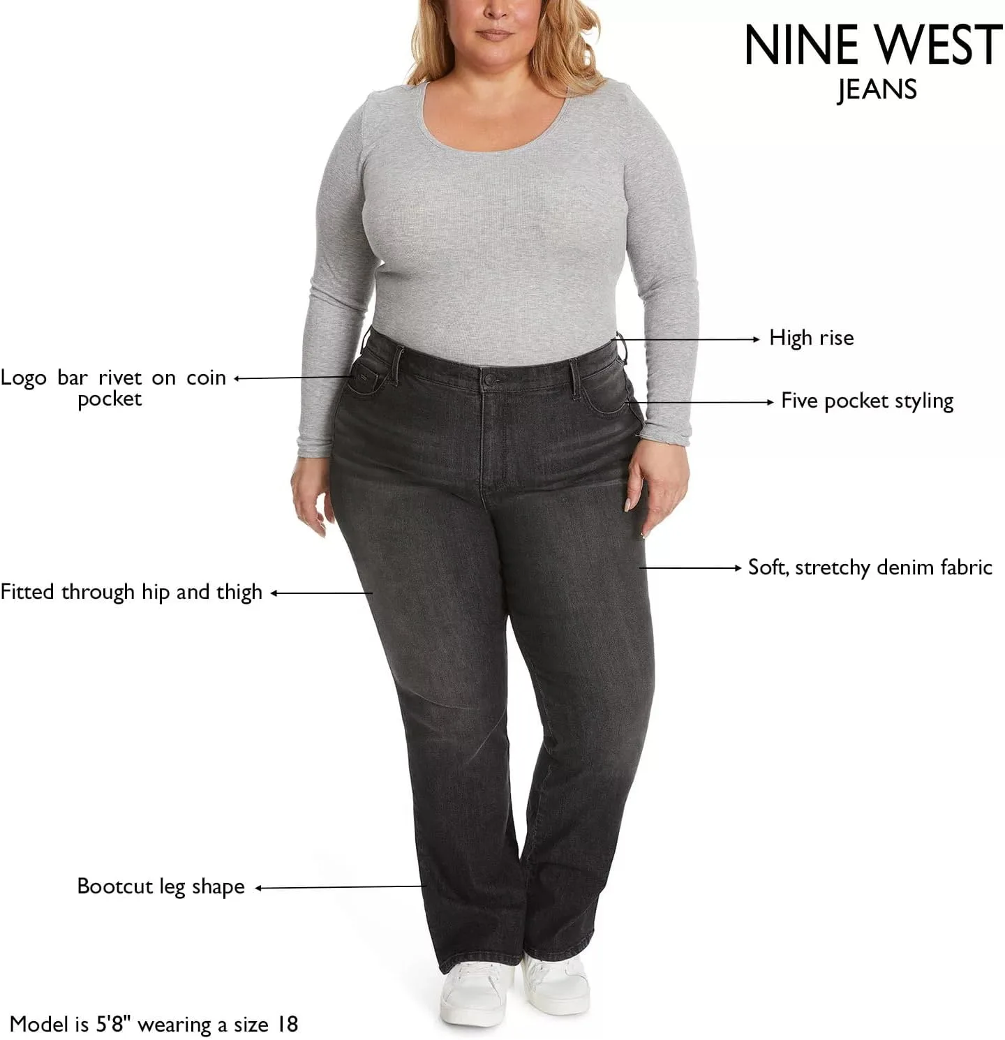 Джинсы Nine Women's Plus Size Bootcut, High-Rise Stretch Nine West