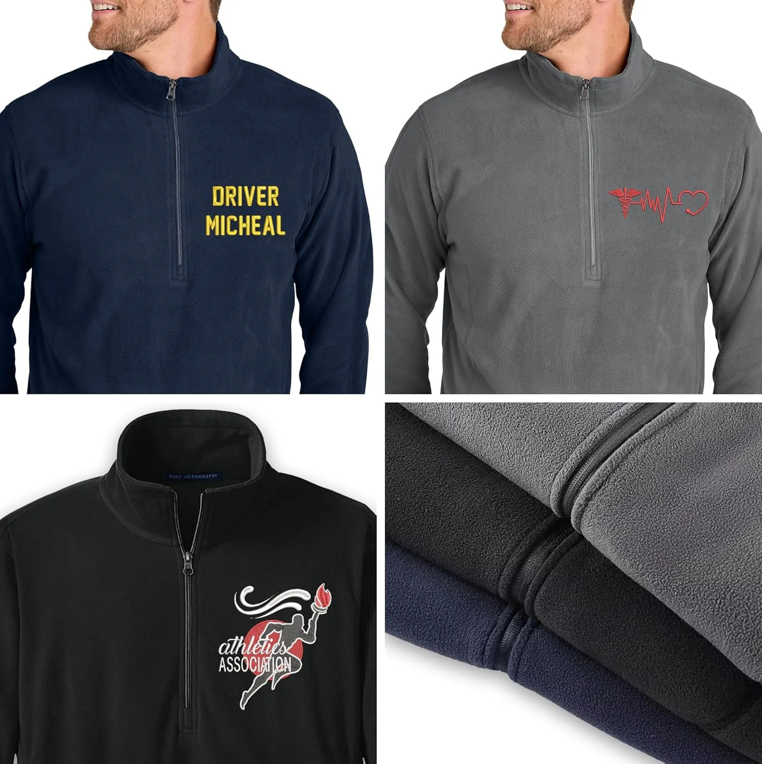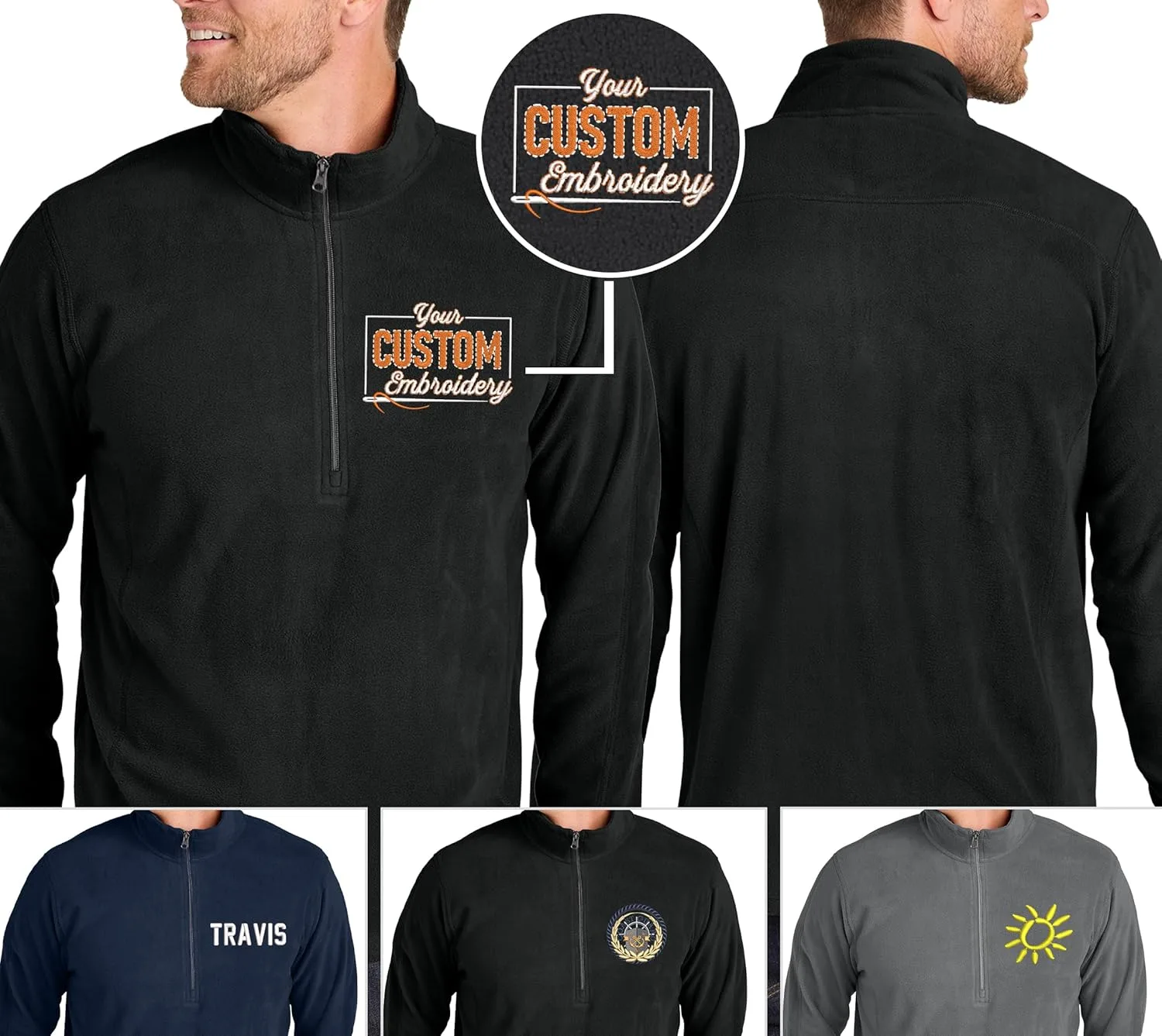 NACRE APPAREL Custom Embroidered Microfleece Half Zip Pullover