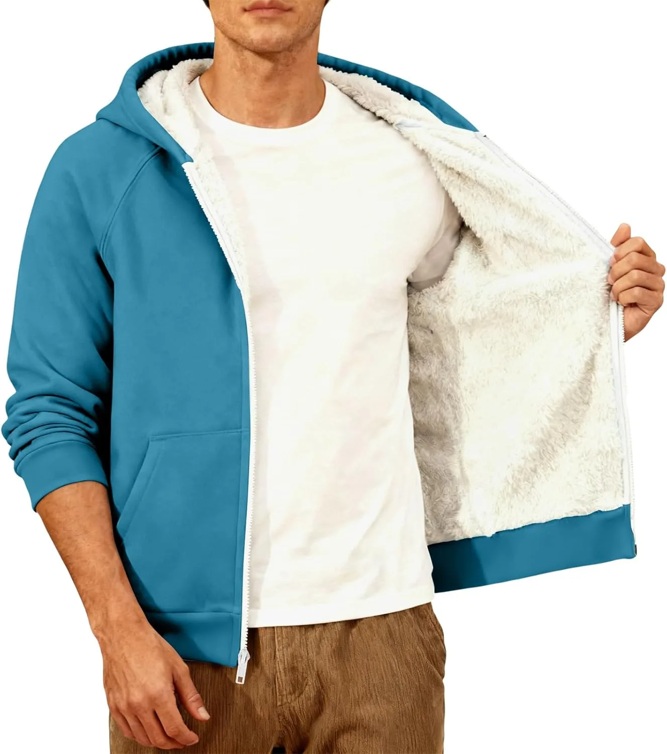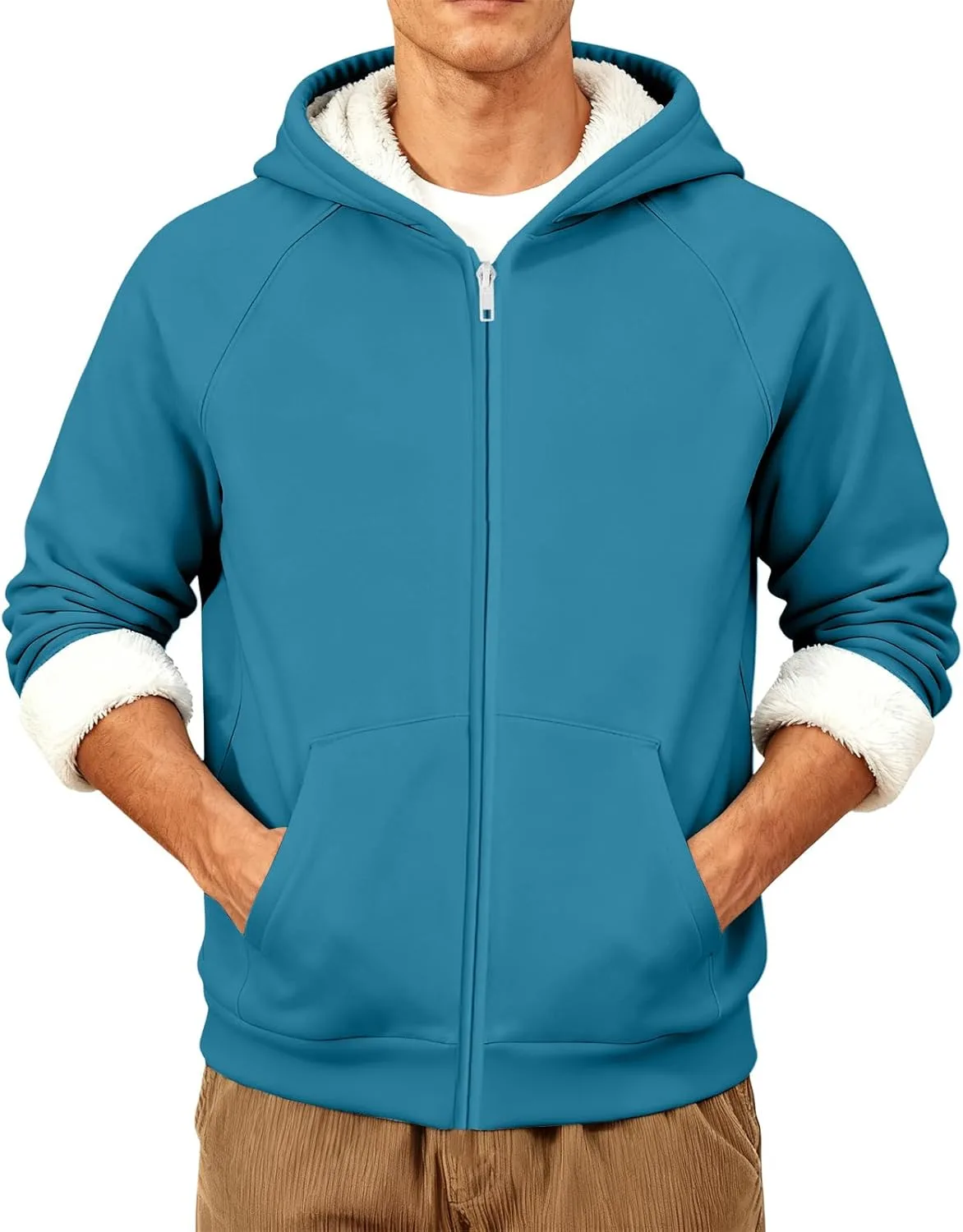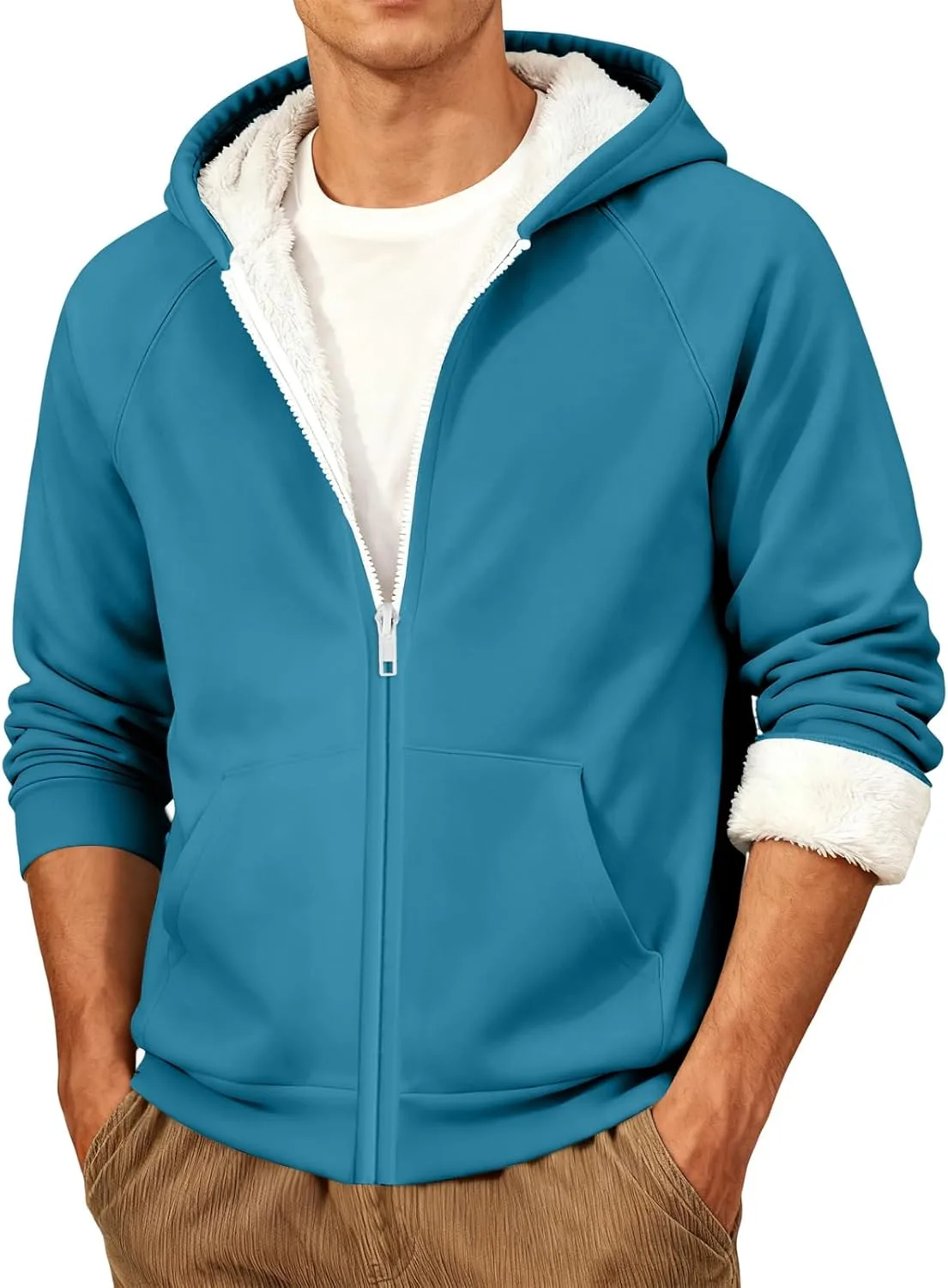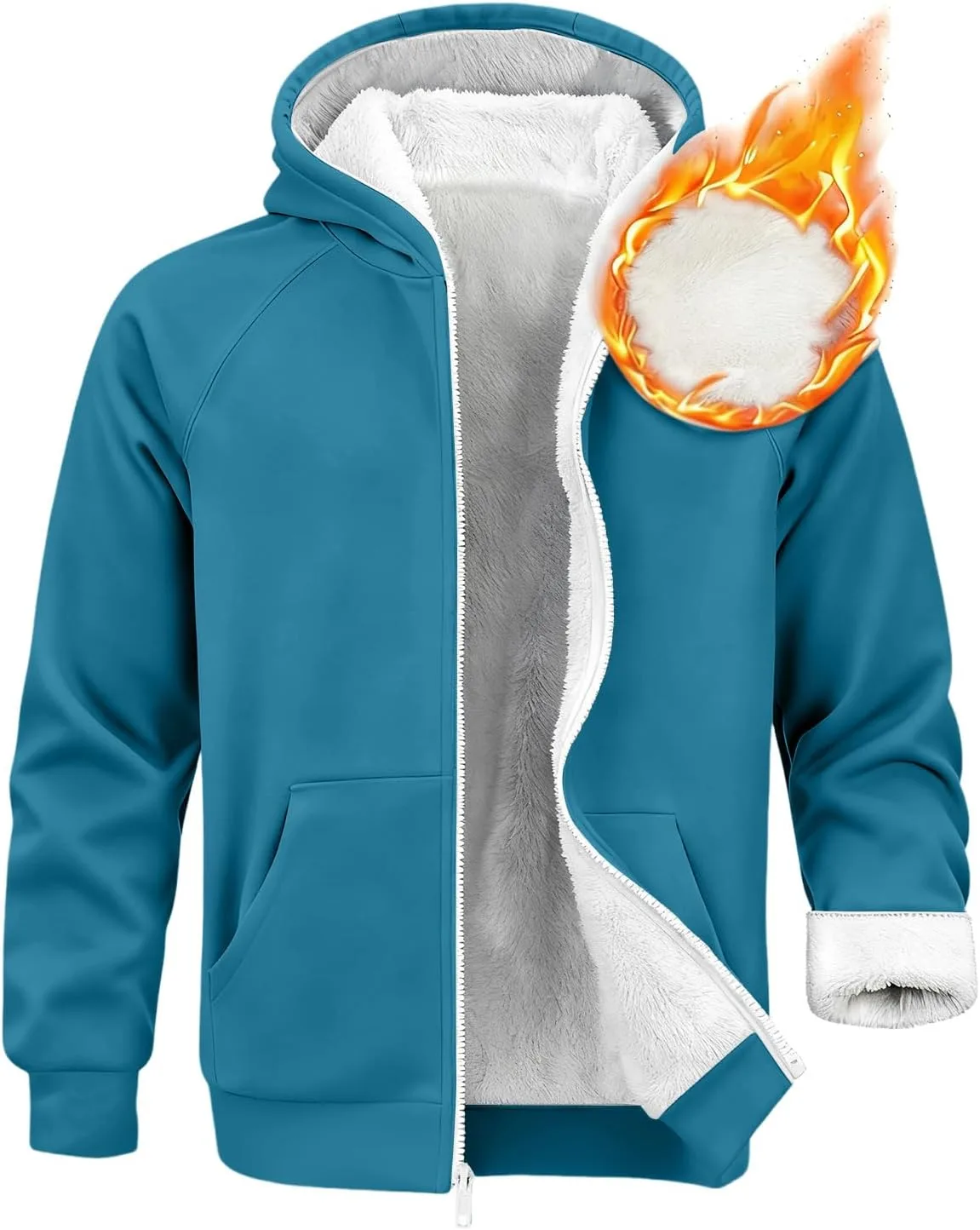 Зимняя толстовка с капюшоном для мужчин, с застежкой-молнией по всей длине, капюшоном на шнуровке, длинными рукавами, застежкой-молнией по всей длине, простым классическим дизайном, теплая, плотная, из искусственного меха, подходит для мужчин и подростков.