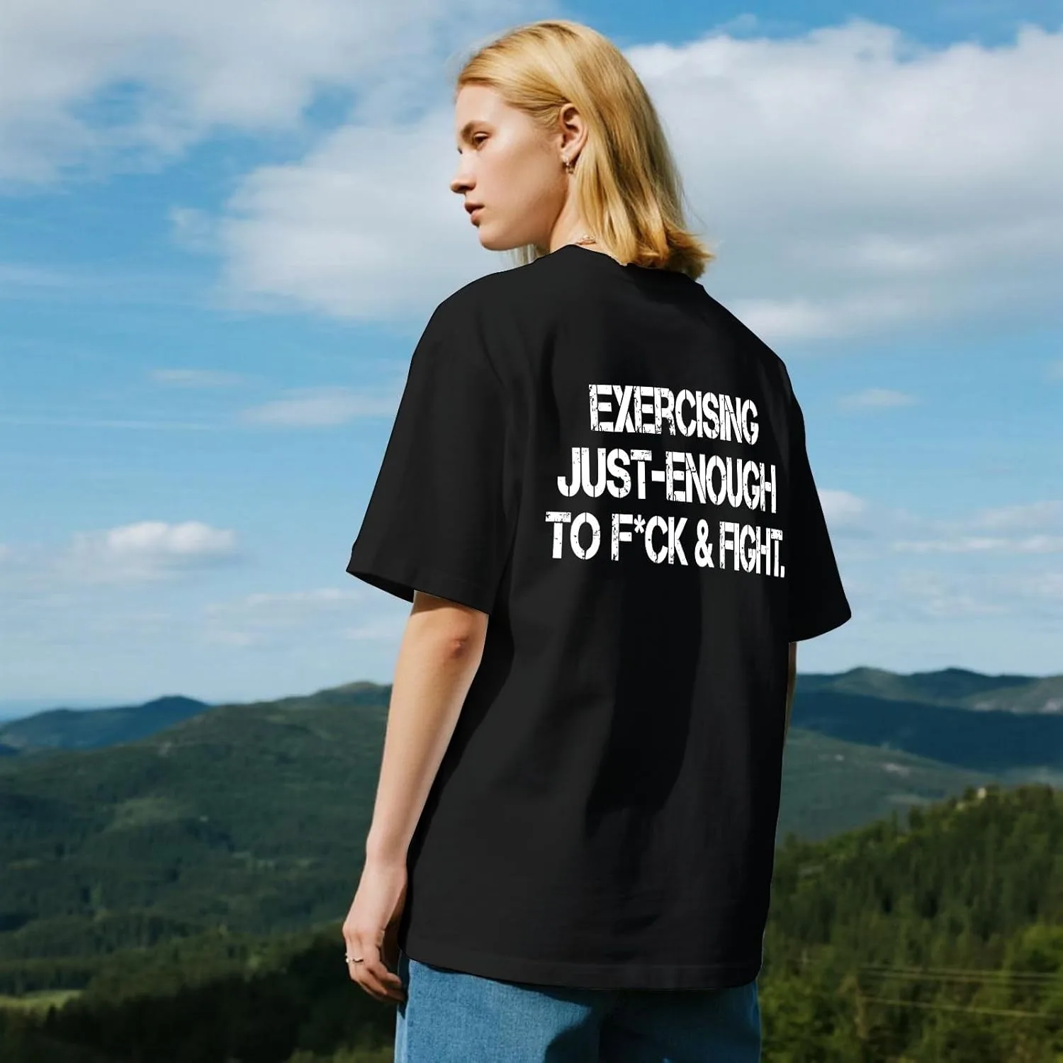 Ручная и машинная стирка. Не замачивать надолго. Не отбеливать. Температура моющего средства не должна превышать 45ºC. Футболки для мужчин с графическим принтом «Exercising Just-Enough to F*CK & Fight», винтажные футболки для высоких мужчин, футболки AllBlack. Ткань: не дает усадки и не деформируется, обладает хорошей эластичностью и воздухопроницаемостью, удобна в ношении и приятна для кожи. Изысканные узоры: Модные узоры идеально подчеркнут вашу индивидуальность и выделят вас из толпы. Внимательное отношение к деталям: усиленный круглый вырез горловины, двойные подвернутые манжеты, тонкая вышивка, аккуратная обработка краев. Идеально подходит для любого случая: подходит для повседневной носки, такой как отдых, отпуск, фитнес, спорт, дом и т. д., прекрасно сочетается с вашими любимыми шортами, брюками, джинсами и т. д., создавая непринужденный, свободный и стильный образ, соответствующий современной уличной культуре.