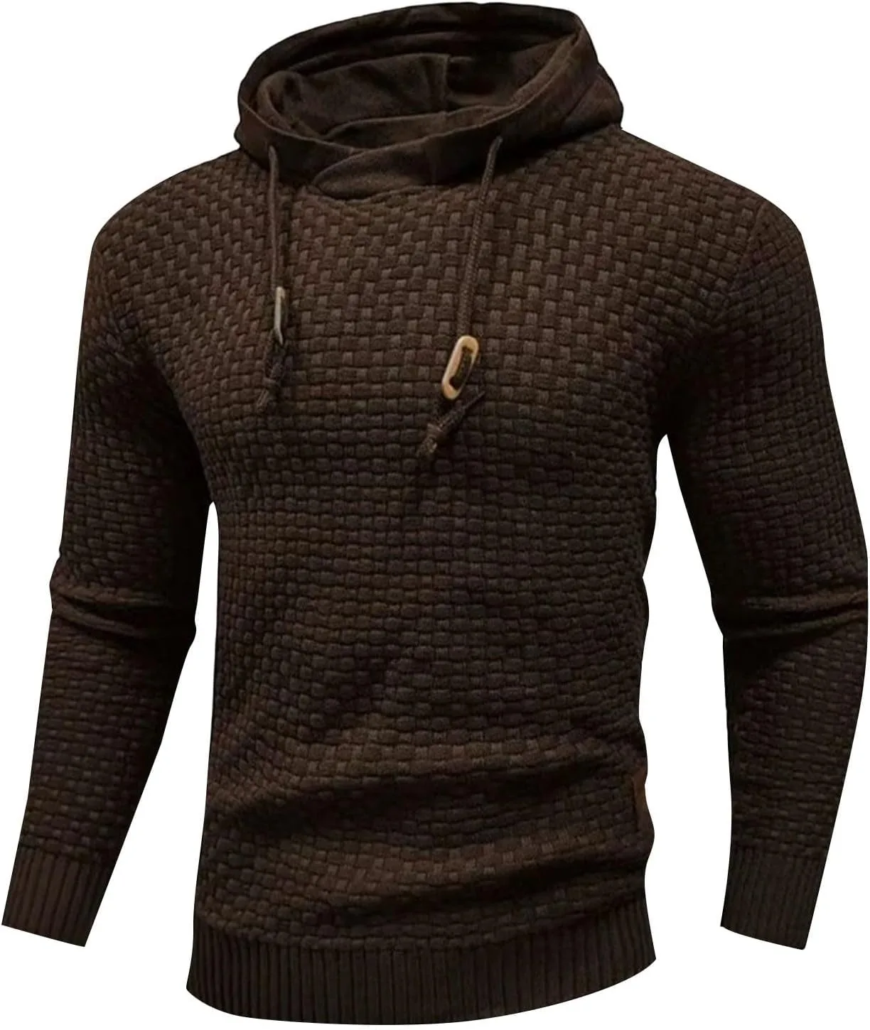 【Стильный дизайн】: Мужская толстовка с вафельной текстурой, вафельный крой, однотонная толстовка, толстовка больших размеров для мужчин с капюшоном на шнуровке для стильного образа.