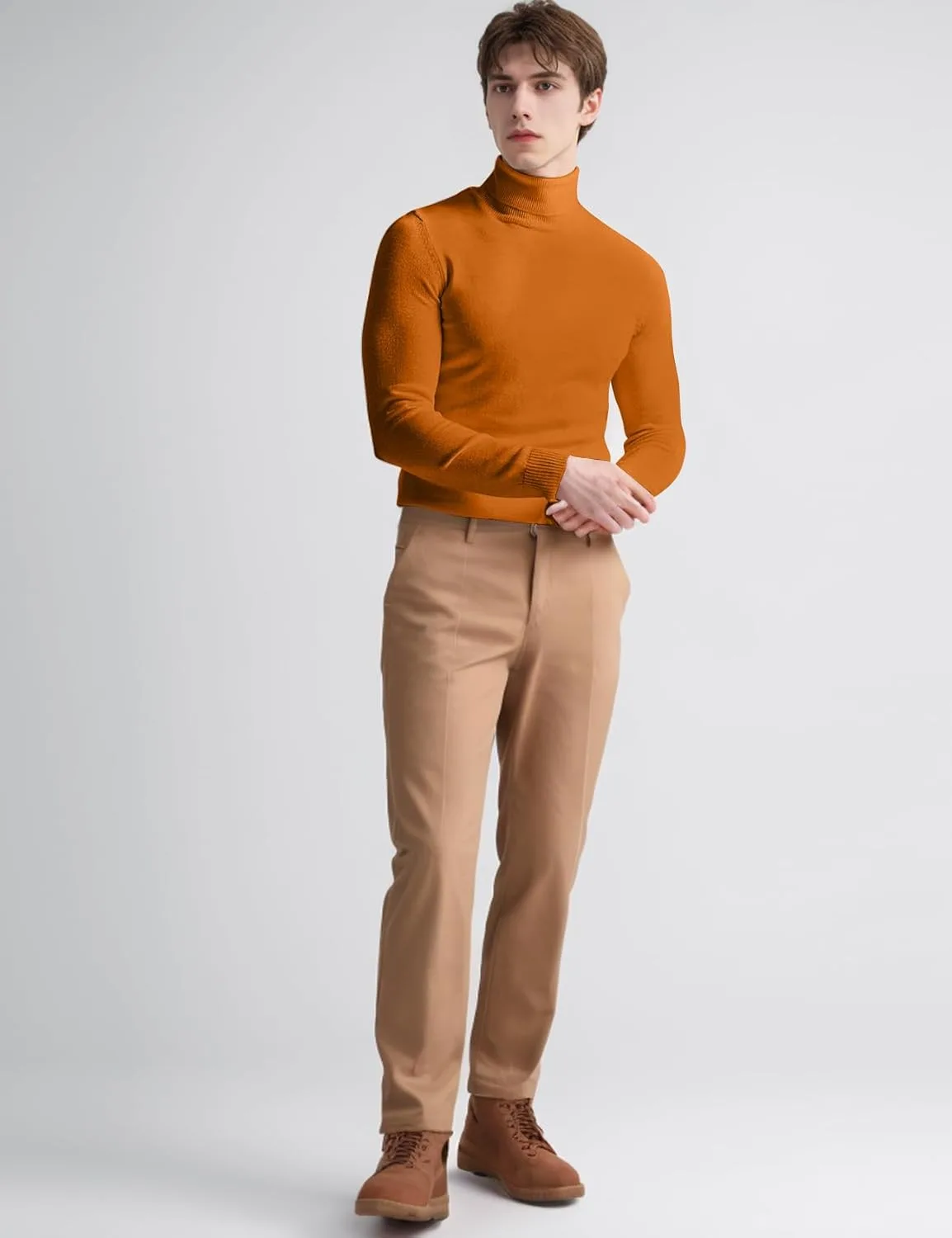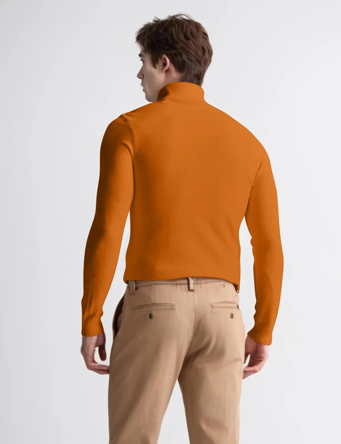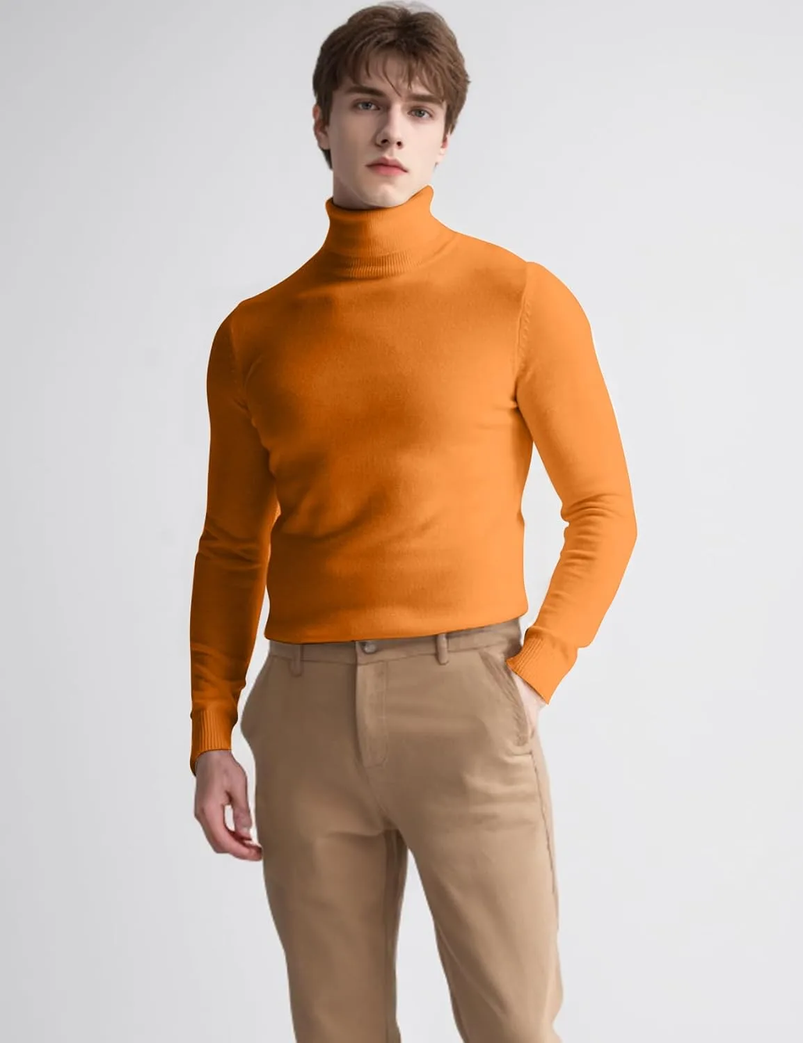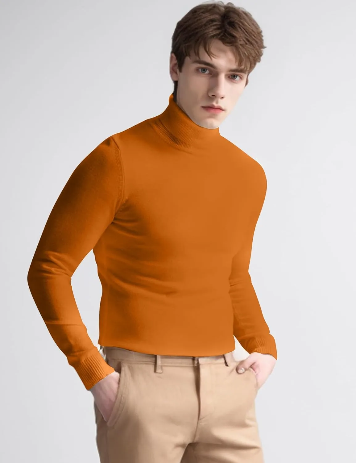 ДИЗАЙН: Мужской пуловер с высоким воротником, длинными рукавами, ребристыми манжетами, однотонный, очень эластичный, мягкий, легкий, теплый базовый пуловер для весны, осени и холодной зимы.
