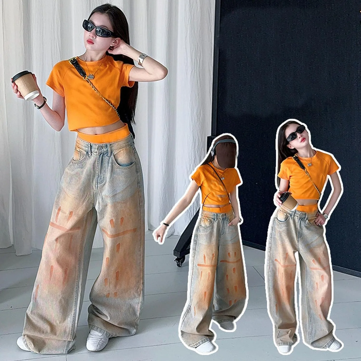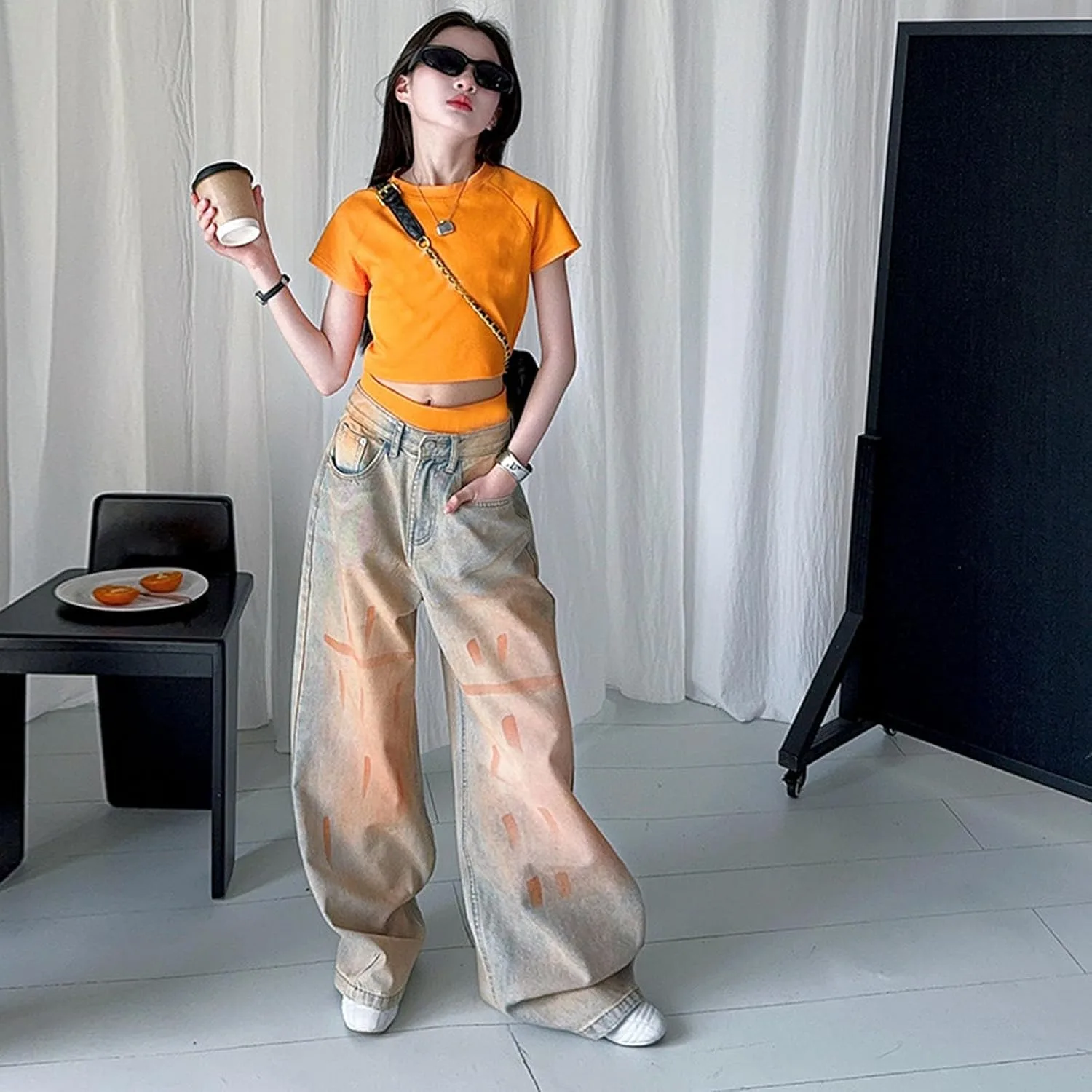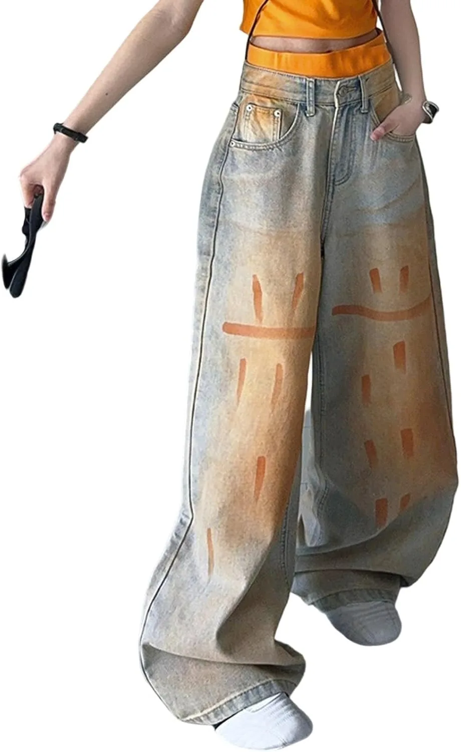 Материал: Эластичная джинсовая ткань с мягкой текстурой для комфорта движений. Дизайн: высокая талия и широкие штанины для создания образа в стиле стритвеар 2000-х. Особенность: Эластичный пояс позволяет легко надевать брюки без застежек. Повод: Подходит для повседневной носки, школьных экскурсий или мероприятий на выходных для подростков. Уход: Машинная стирка в холодной воде, вывернув наизнанку, сушка в сушилке при низкой температуре.