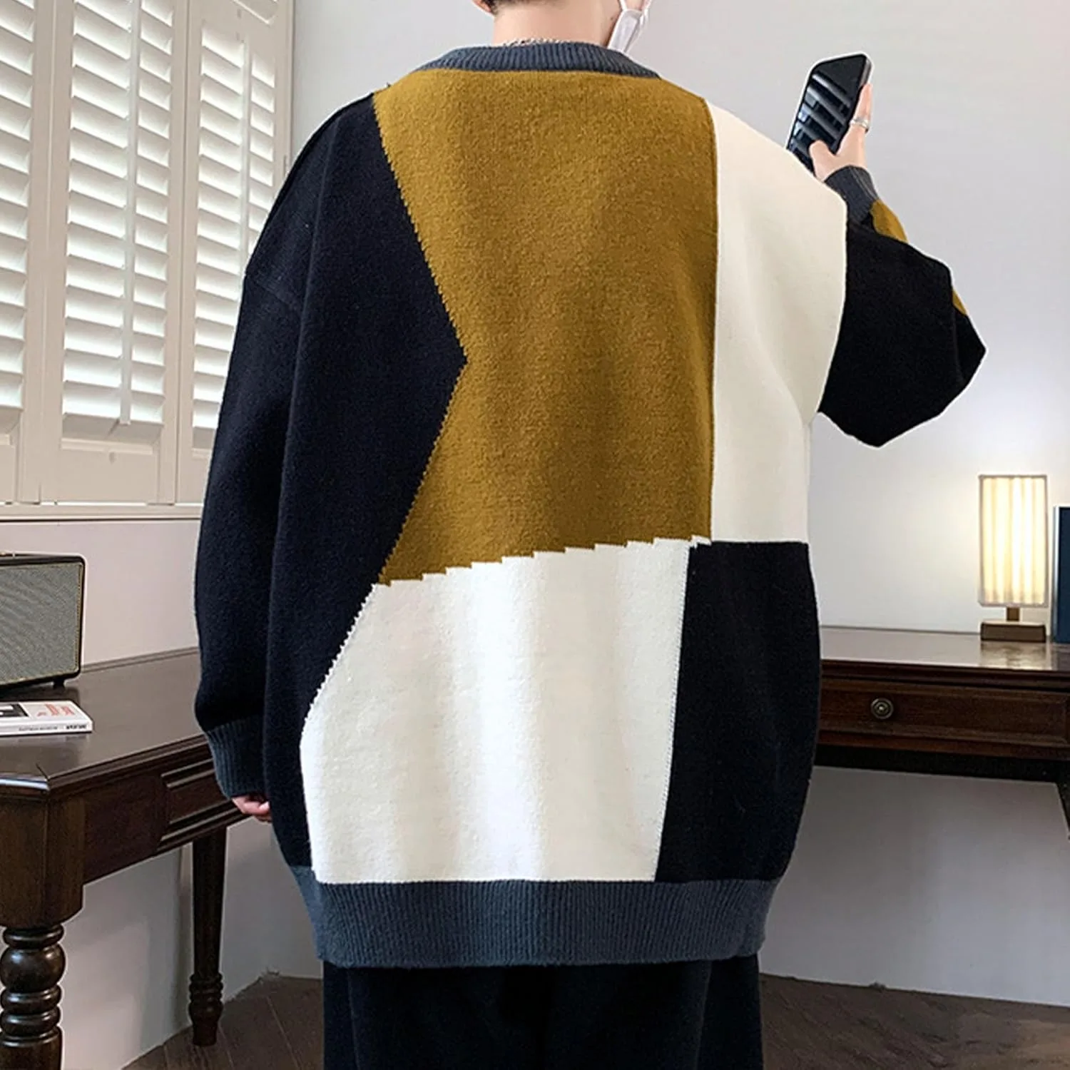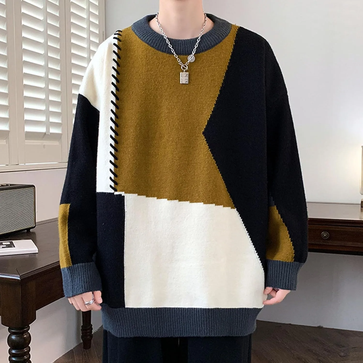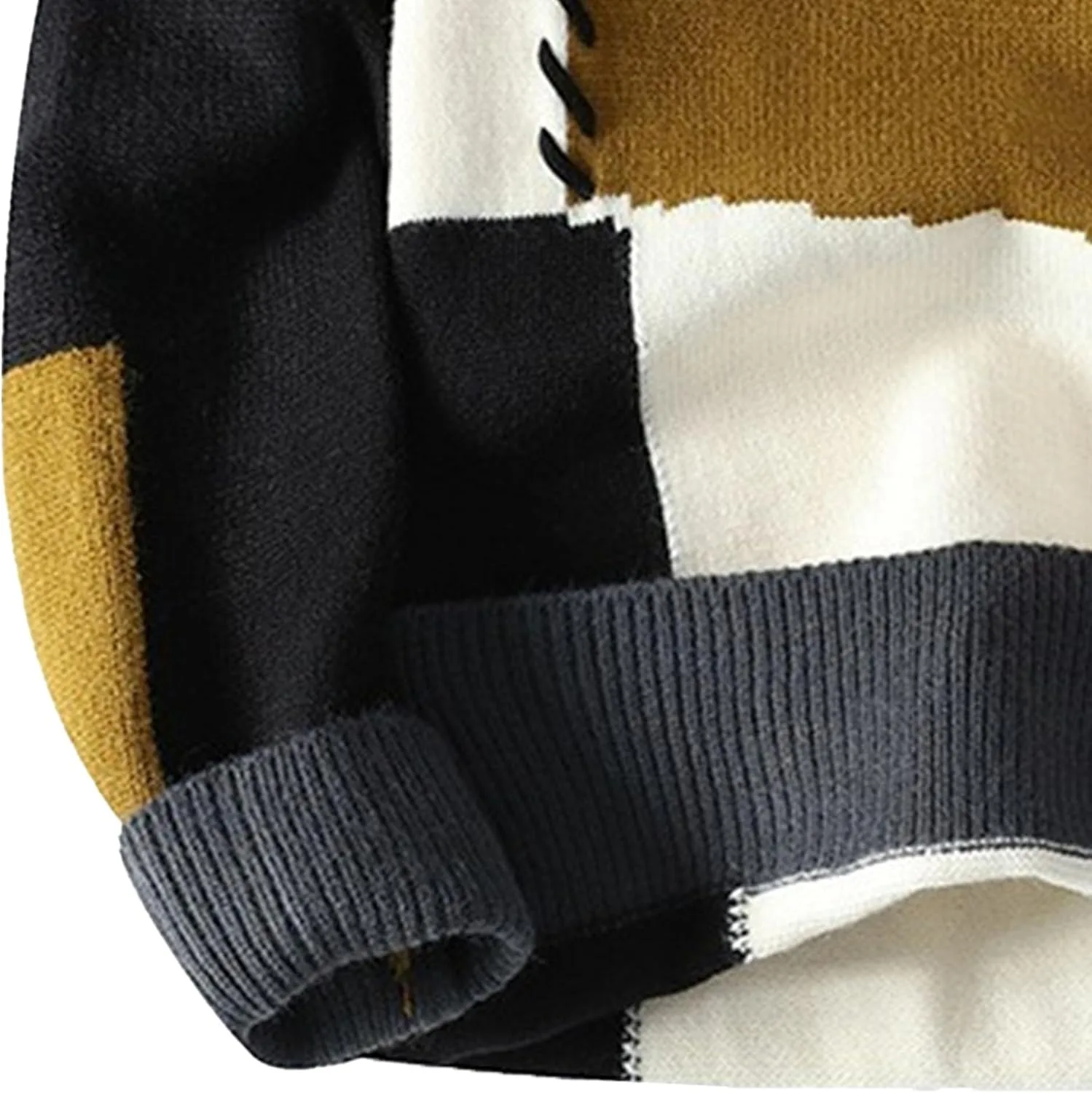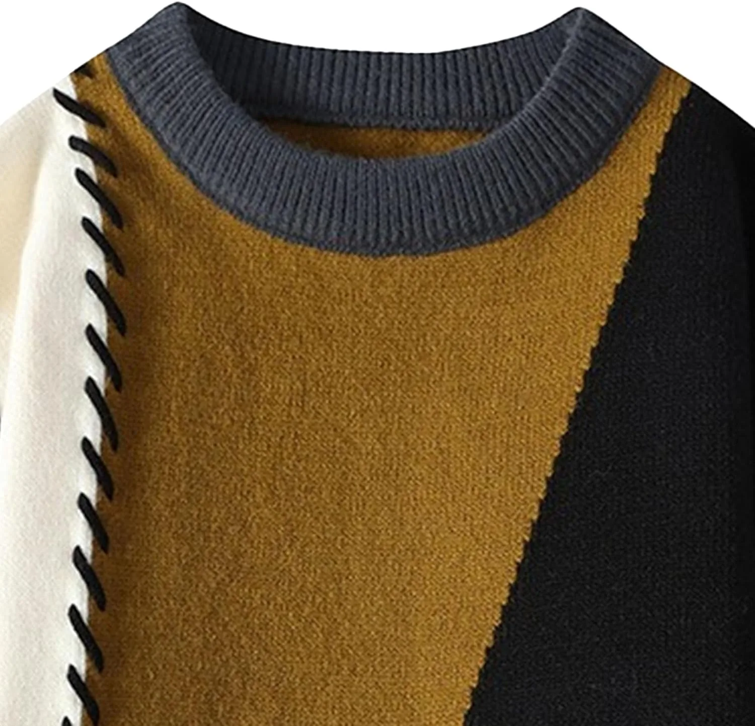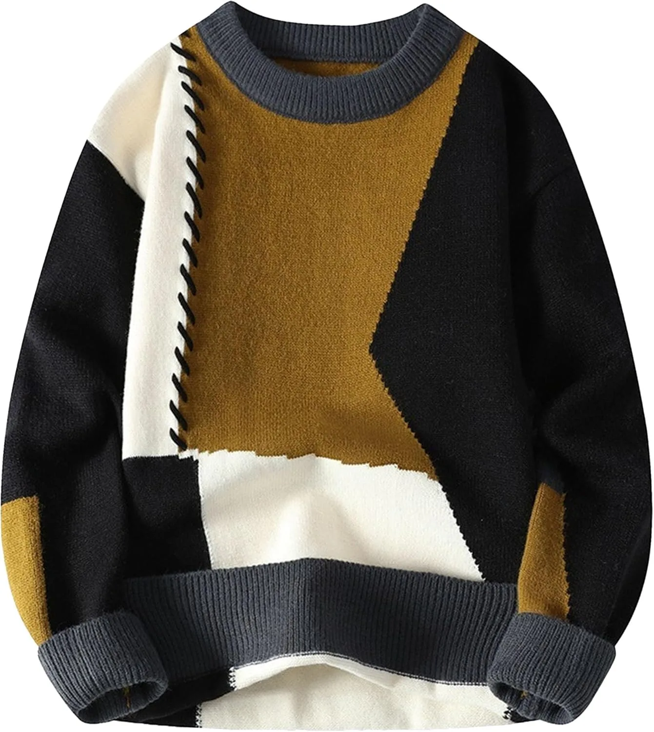 Классический дизайн с круглым вырезом: Мужской свитер с круглым вырезом имеет классический дизайн с длинными рукавами и отложным воротником, идеально сочетая в себе повседневный и элегантный стиль. Ребристые манжеты и нижний край обеспечивают комфорт, согревая вас зимой и придавая стильный вид.