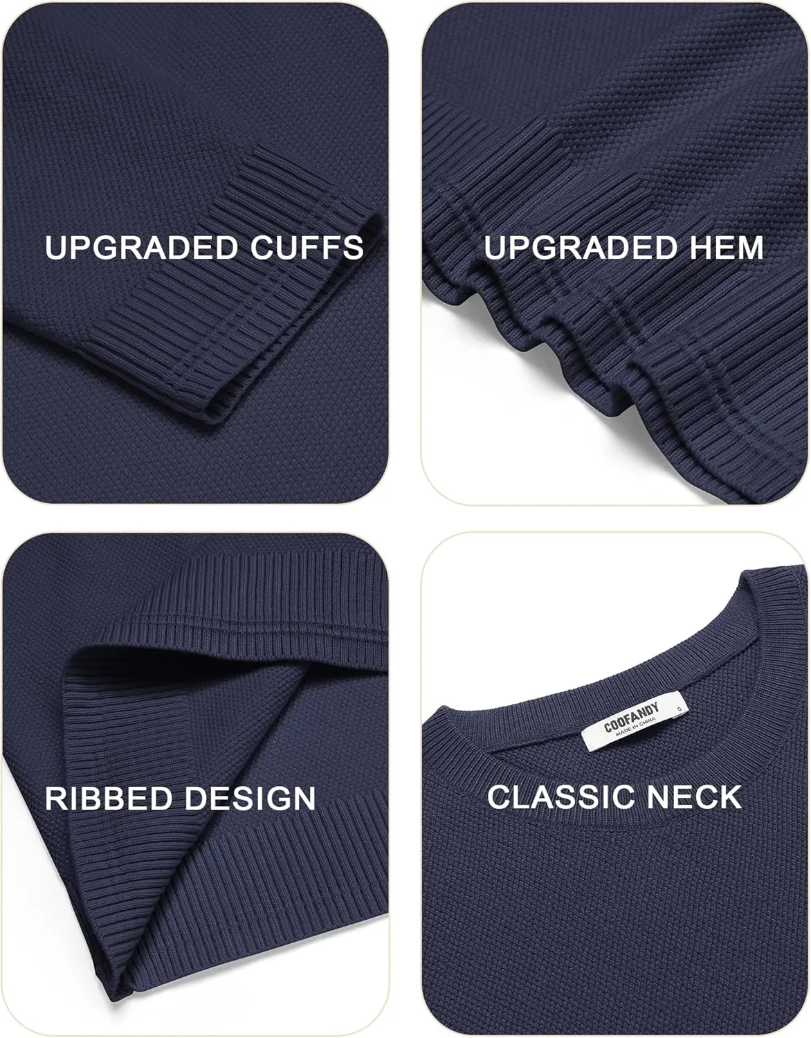 【Классический дизайн】 Мужской вязаный пуловер имеет приталенный крой, уникальную текстуру, ребристый круглый вырез, нижний край и манжеты. Простой дизайн делает его идеальным для делового повседневного стиля.