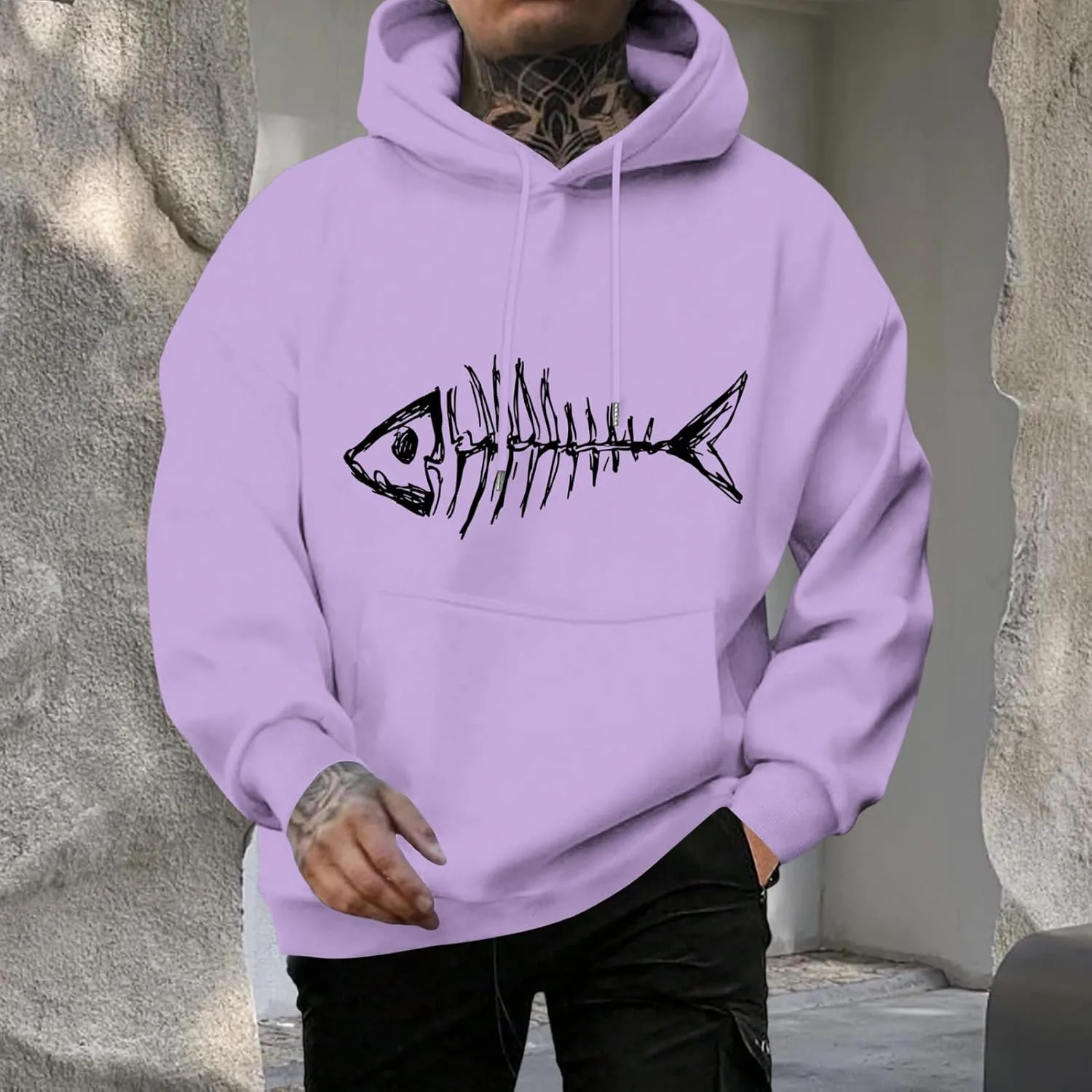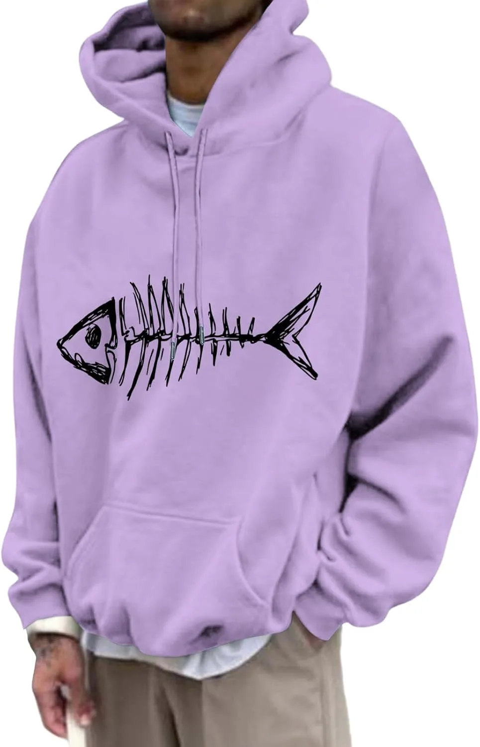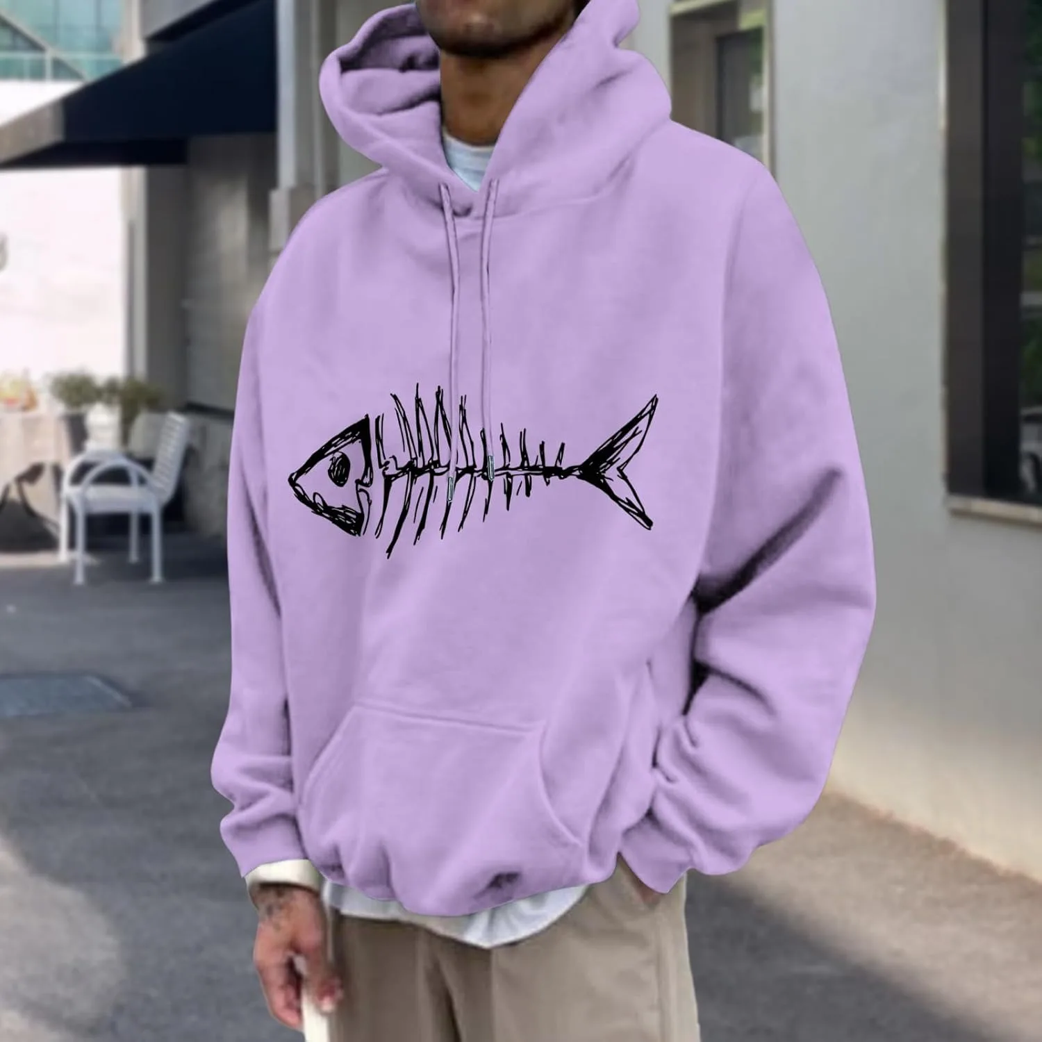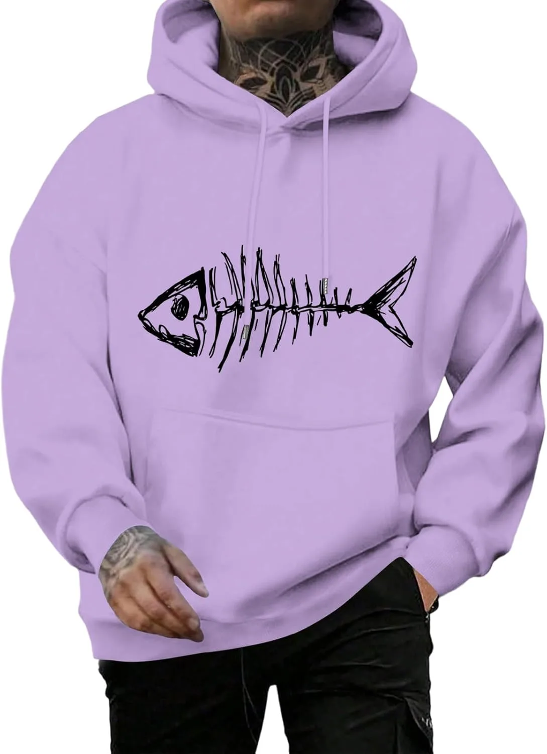 Привлекательный дизайн: благодаря яркому принту в виде рыбьей кости и приспущенным плечам, забавные худи для мужчин сочетают в себе модные элементы повседневного стиля и свободный крой, обеспечивая превосходный комфорт и эффектный внешний вид для повседневной носки или неформальных случаев.