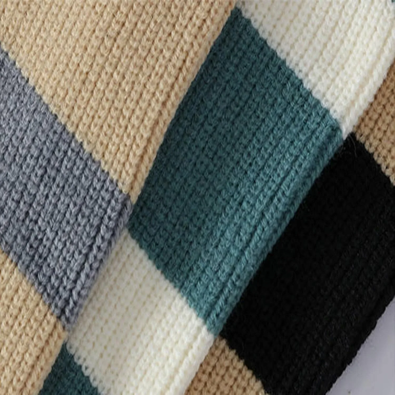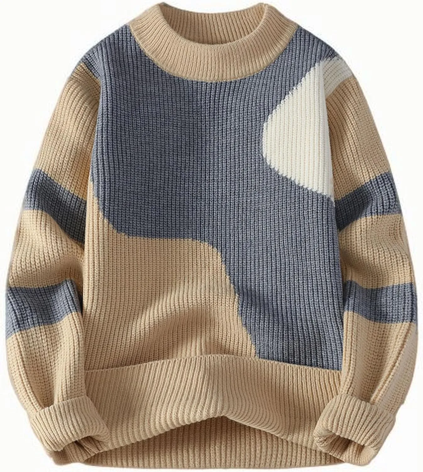 Мужской свитер Vintage Patchwork Oversized с длинным рукавом QUNPIU