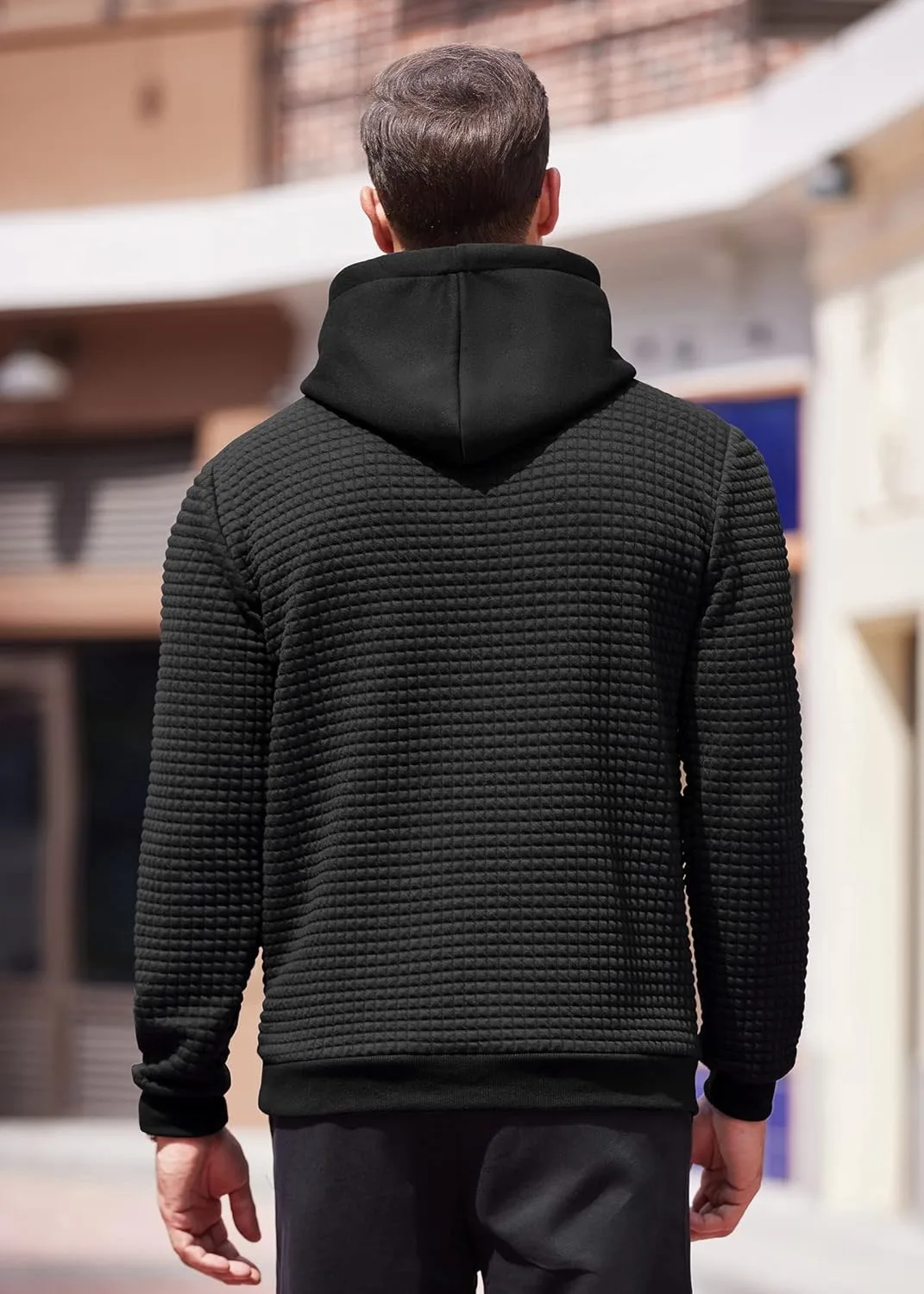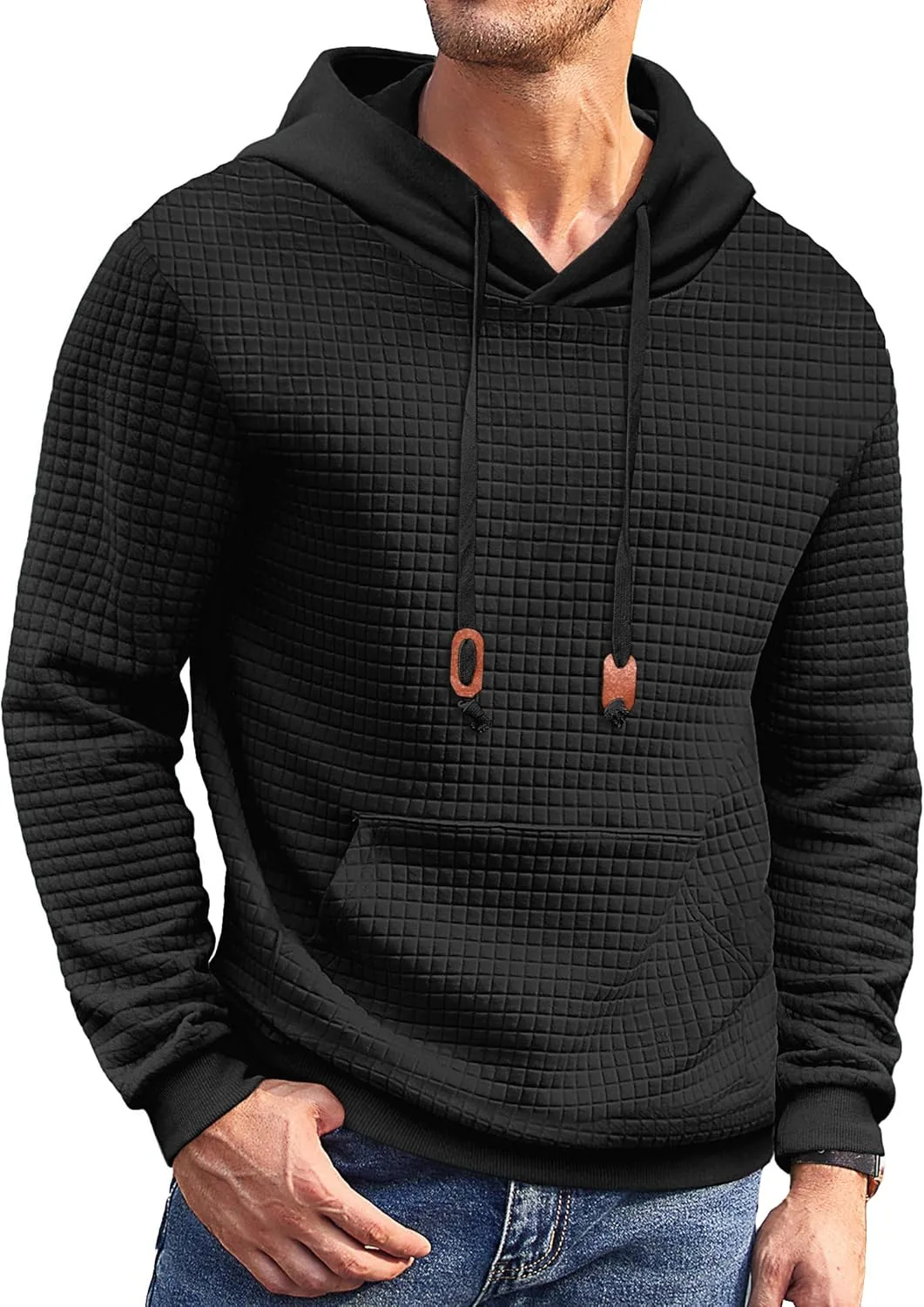 Особенности: Мужская толстовка содержит множество небольших, но полезных дизайнерских деталей: клетчатый жаккард, однотонный узор, капюшон на шнурке с карманом-кенгуру, позволяющим носить с собой мелкие вещи, такие как ключи, телефон, кошелек и т. д.