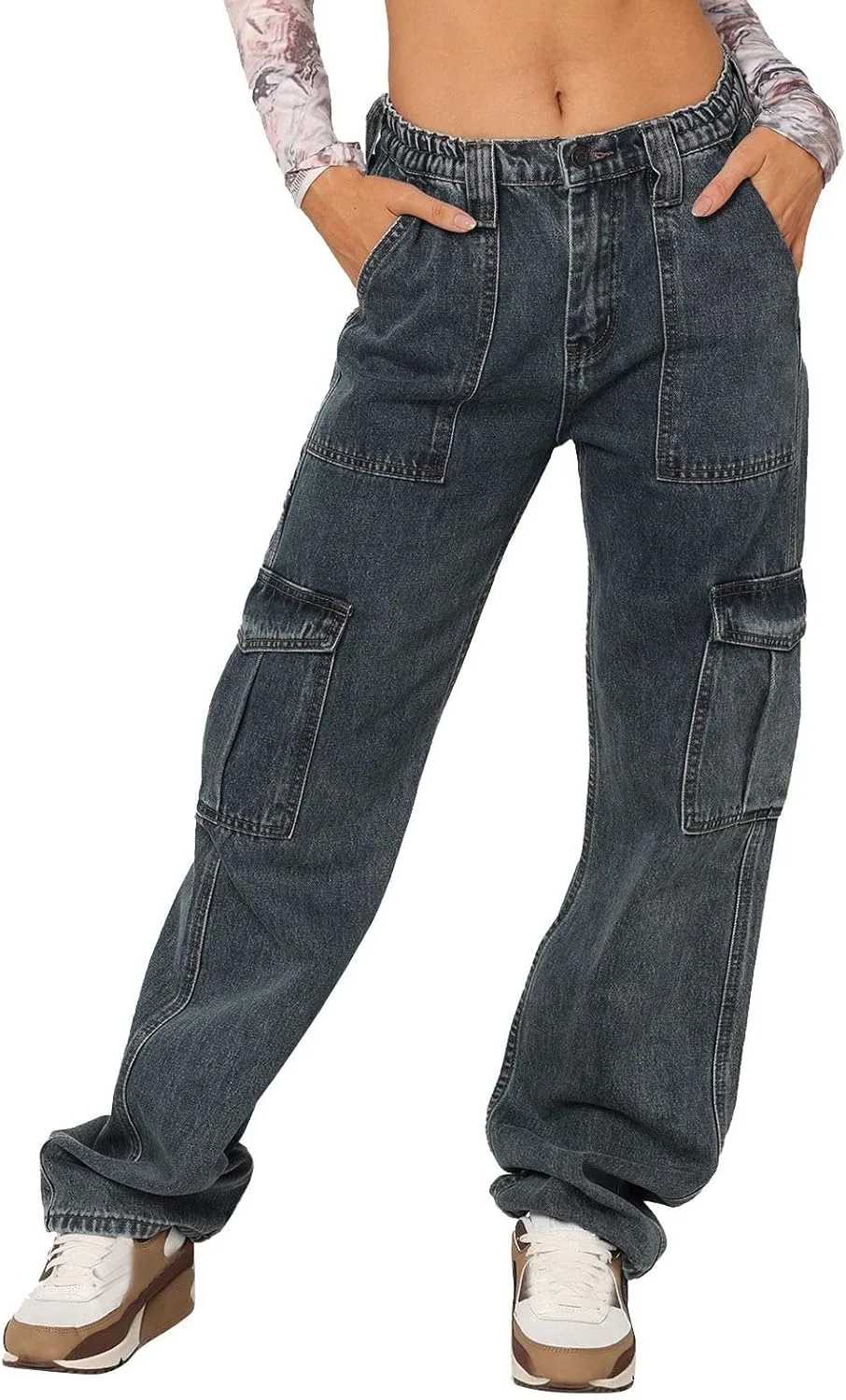 Джинсы для женщин Модные свободные джинсы Джинсы с карманами Повседневные джинсы с высокой талией Джинсы с высокой посадкой Женские джинсы со средней посадкой Рваные джинсы с эффектом потертости Винтажные джинсы Прямые джинсы Джинсы до щиколотки Джинсы-клеш Джинсы для невысоких женщин Джинсы больших размеров SML XL XXL