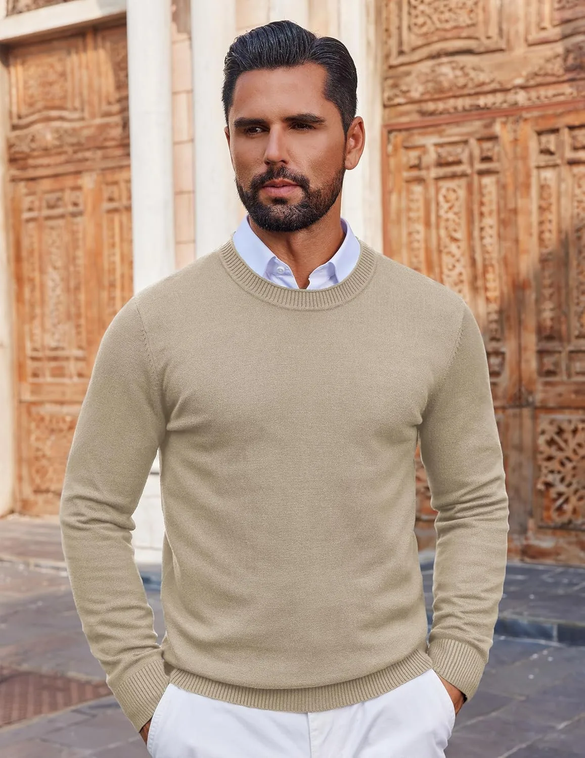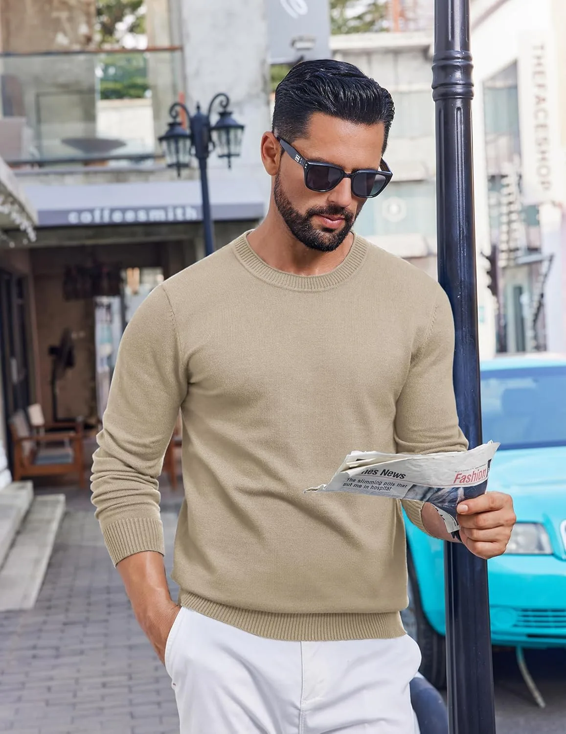 【Комфортная ткань】Мужской свитер с круглым вырезом изготовлен из мягкого, легкого и эластичного материала, который согревает, не утяжеляя изделие, обеспечивая комфорт и тепло в прохладные дни.