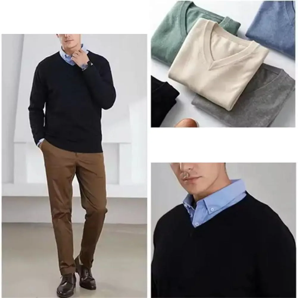 Высококачественная ткань: Этот мужской вязаный свитер с V-образным вырезом изготовлен из теплой, мягкой, легкой, дышащей и приятной для кожи трикотажной ткани премиум-класса, обеспечивающей комфорт в течение всего дня.
