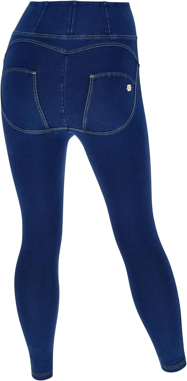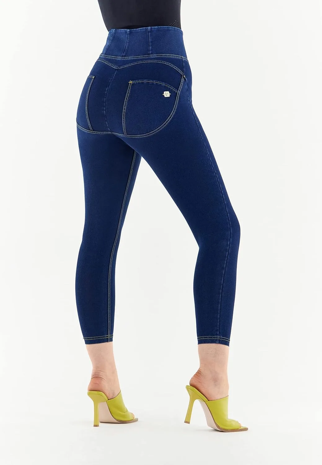 Название модели: Wrup Curvy Denim - Застежка-молния, высокая талия - Укороченная длина - Темно-синий цвет + желтая строчка