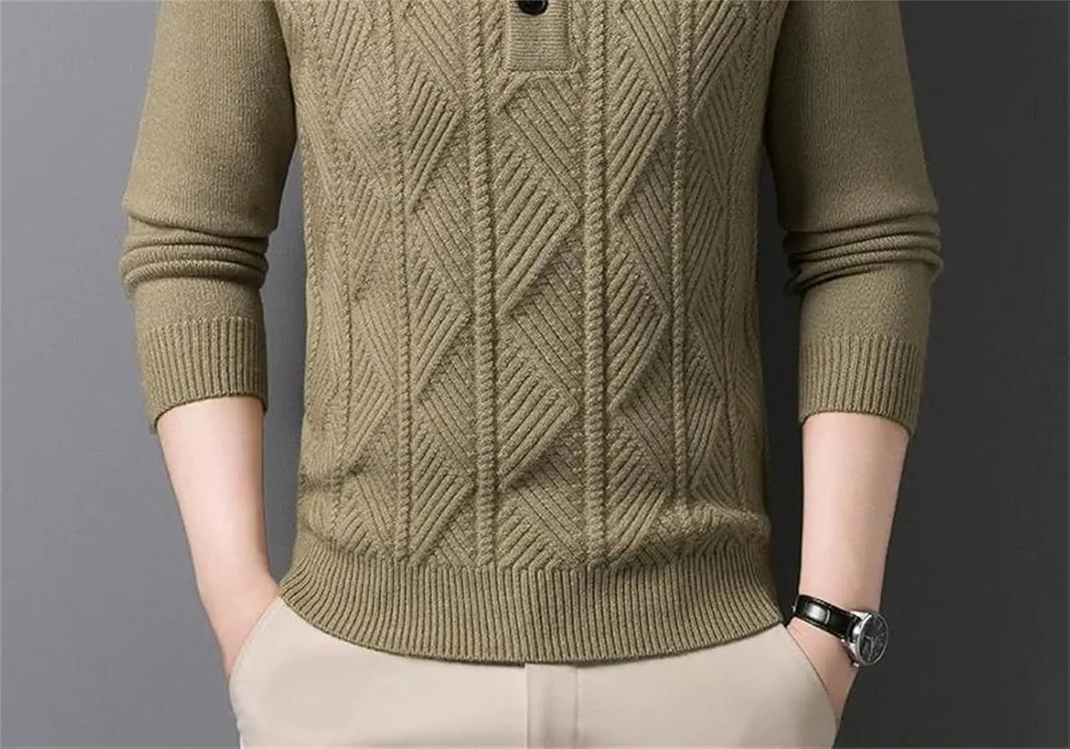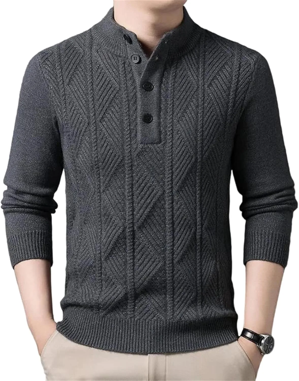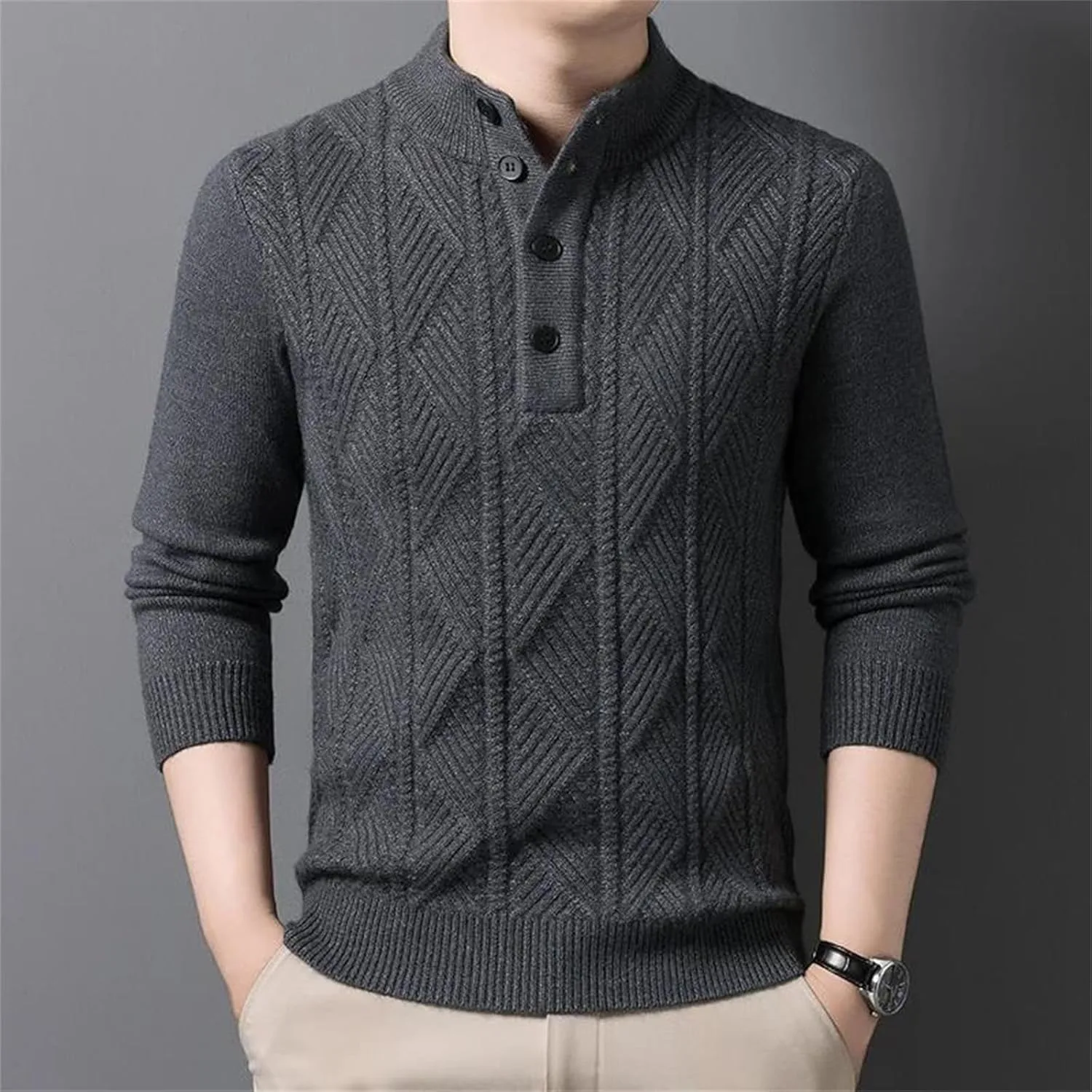 Этот мужской вязаный свитер из 100% шерсти создан для деловых встреч осенью и зимой. Изготовленный из высококачественной шерстяной пряжи, он мягкий на ощупь и обеспечивает тепло и комфорт. Трехмерная текстура вязки в сочетании с классическим V-образным вырезом подчеркивает элегантность и уверенность джентльмена. В сочетании с рубашкой для деловой встречи или в качестве самостоятельной вещи для повседневной прогулки, он легко создает изысканный и уравновешенный образ. Технология высокоплотной вязки гарантирует устойчивость свитера к деформации и образованию катышков, обеспечивая долговечность. Простая цветовая палитра и изысканные детали делают его универсальным элементом осенне-зимнего гардероба.