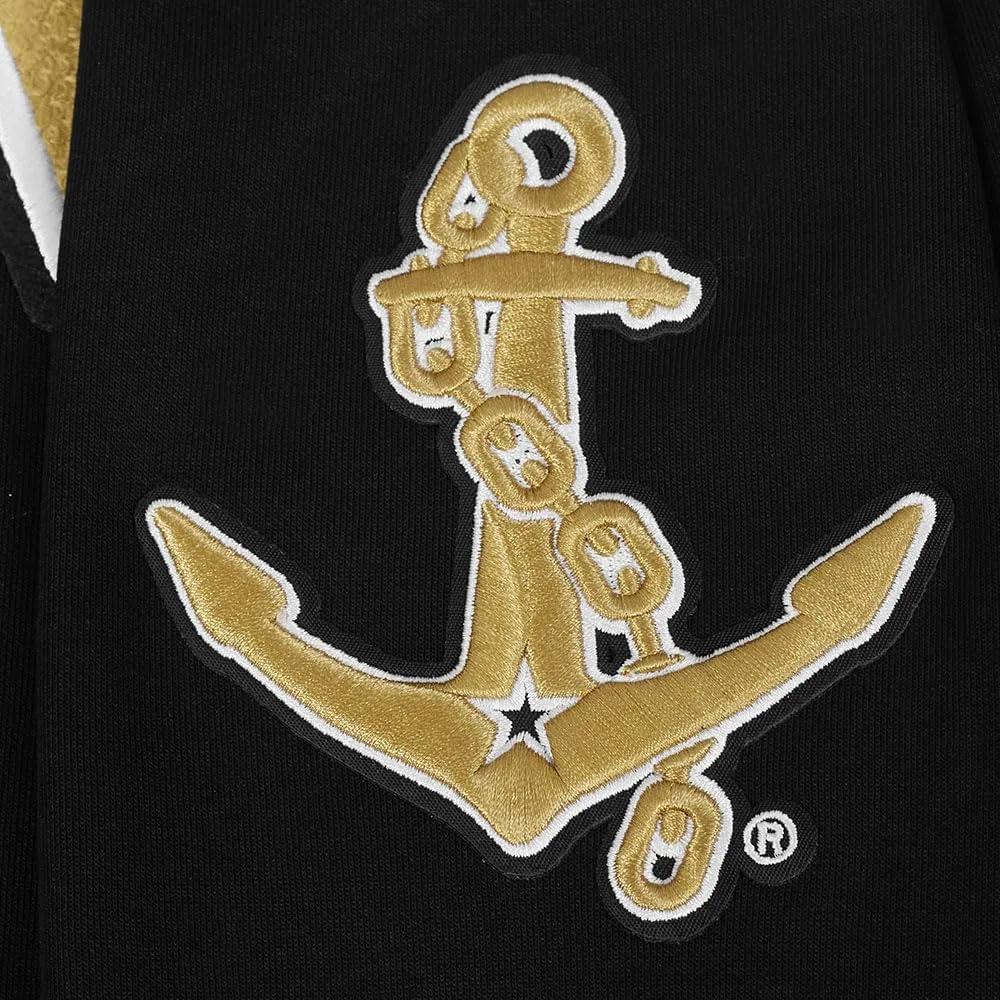 Коллекция College Classic Chenille черпает вдохновение в динамичной энергии культуры студенческого спорта, демонстрируя культовые логотипы учебных заведений и вневременные спортивные стили. Этот пуловер с капюшоном, изготовленный из высококачественной двухслойной трикотажной ткани, имеет стандартный, но удобный крой, ребристый низ и манжеты рукавов, а также уютный двухслойный капюшон. Оснащен прочными 25-сантиметровыми шнурками с металлическими наконечниками и удобным карманом-кенгуру для легкого хранения. Аппликация из синели с вышивкой атласным стежком на фетровой основе. Официально лицензированная продукция