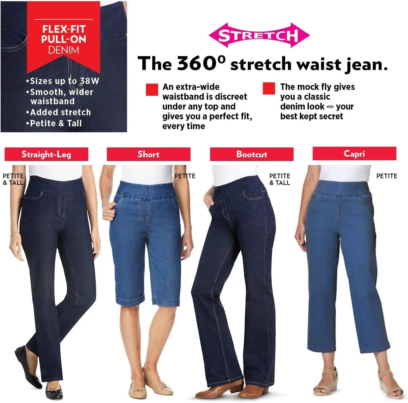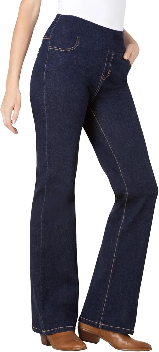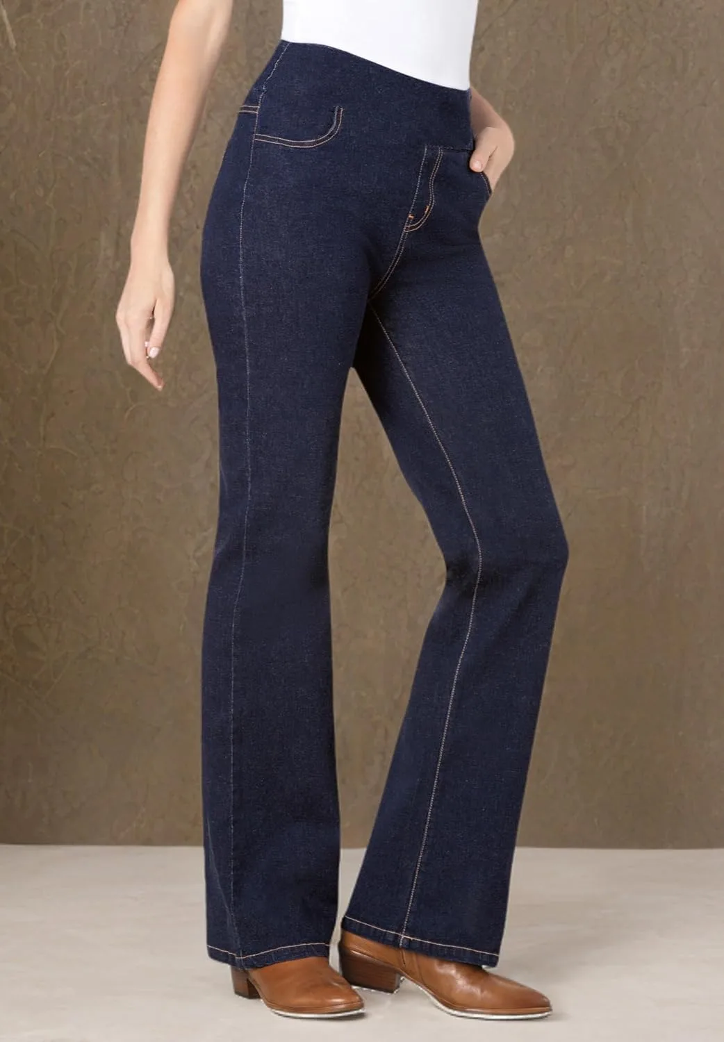 Эти удобные джинсы-клеш из эластичного денима имеют плоский эластичный пояс без зазоров. Джинсы обеспечивают гладкий вид под любой вашей любимой одеждой, включая топы и туники. Наслаждайтесь классическим видом отличных джинсов, но при этом чувствуйте себя комфортно благодаря эластичности по всей поверхности. Изготовлены с плоским эластичным поясом, который гладко облегает талию, идеально подходит для ношения в течение всего дня. Имитация застежки-молнии обеспечивает гладкий вид под вашей любимой одеждой, подчеркивая ваш силуэт. Плотно прилегают к телу под одеждой и сидят прямо на бедрах. Наслаждайтесь свободой движений благодаря мягкому эластичному дениму, который адаптируется к вашему телу, обеспечивая при этом расслабленную, но надежную посадку. Практичные и удобные плоские передние и задние карманы обеспечивают достаточно места для хранения ваших вещей. Доступны размеры: средний (длина внутреннего шва 31 дюйм), маленький (длина внутреннего шва 29 дюймов) и высокий (длина внутреннего шва 34 дюйма), чтобы подойти любому типу фигуры. Изготовлены из прочной смеси хлопка, полиэстера и спандекса для долговечности. Можно стирать в машине для удобства ухода. Импортные.