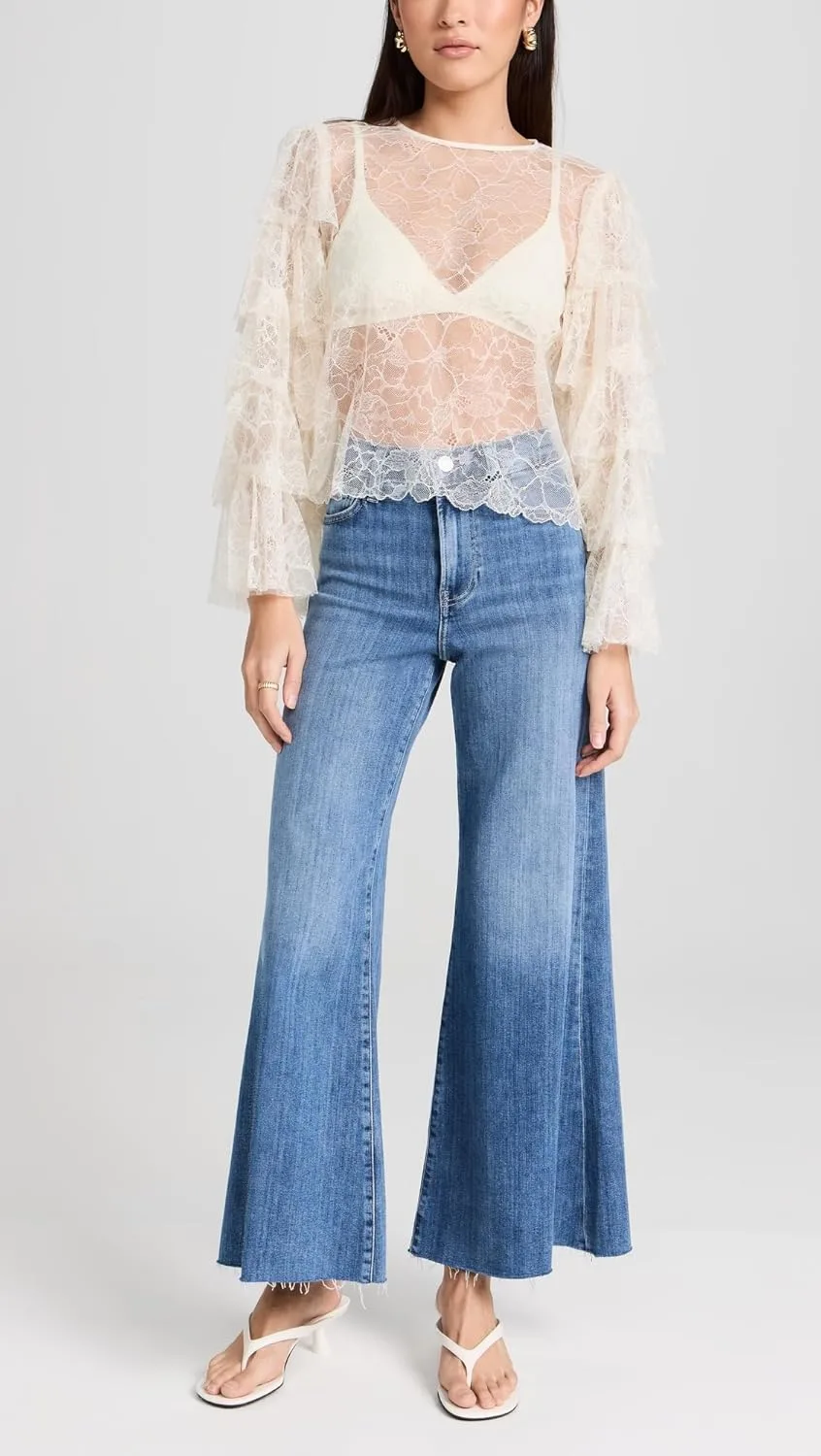Размер соответствует стандартному. Модель с высокой посадкой. Укороченные широкие штанины заканчиваются на уровне щиколотки и имеют необработанный край. Джинсовая ткань суперэластичная, мягкая на ощупь. Материал: Джинсовая ткань средней плотности, обладающая высокой эластичностью. Широкие штанины с необработанными манжетами. Высота посадки: 9,75 дюйма / 25 см, Длина внутреннего шва: 28,25 дюйма / 72 см, Ширина штанины внизу: 26,75 дюйма / 68 см 5-карманный дизайн