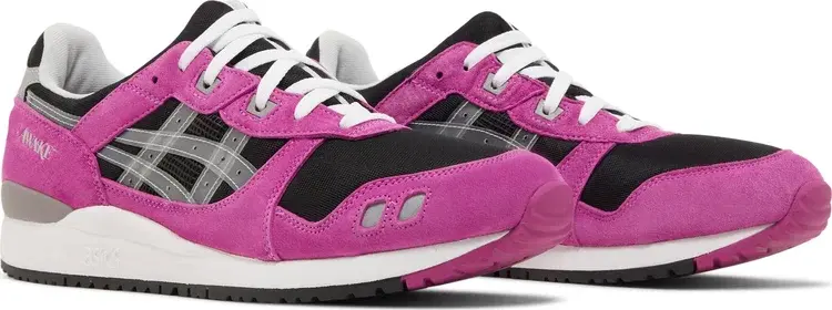 Кроссовки Awake NY x ASICS Gel Lyte 3 'Black Pink' воссоединяют нью-йоркский лейбл Анджело Баке с брендом спортивной одежды, основанным в Кобе, Япония, в 1949 году. Эта яркая интерпретация ретро-беговых кроссовок имеет черный текстильный верх с пурпурными замшевыми накладками и полупрозрачные боковые полосы. Надпись «Awake NY» нанесена на боковой пятке правого ботинка, а на левом — логотип Gel Lyte 3 в том же месте. Легкая амортизация обеспечивается полноразмерной промежуточной подошвой из ЭВА, поддерживаемой под ногами прочной двухцветной резиновой подошвой.
