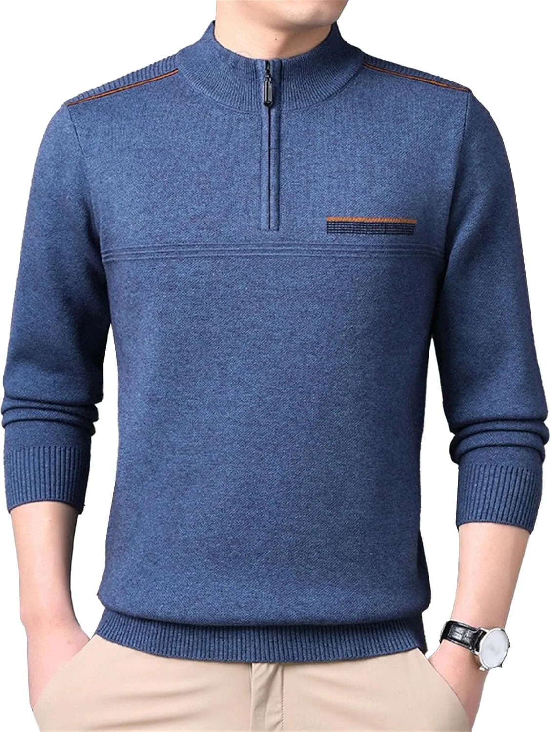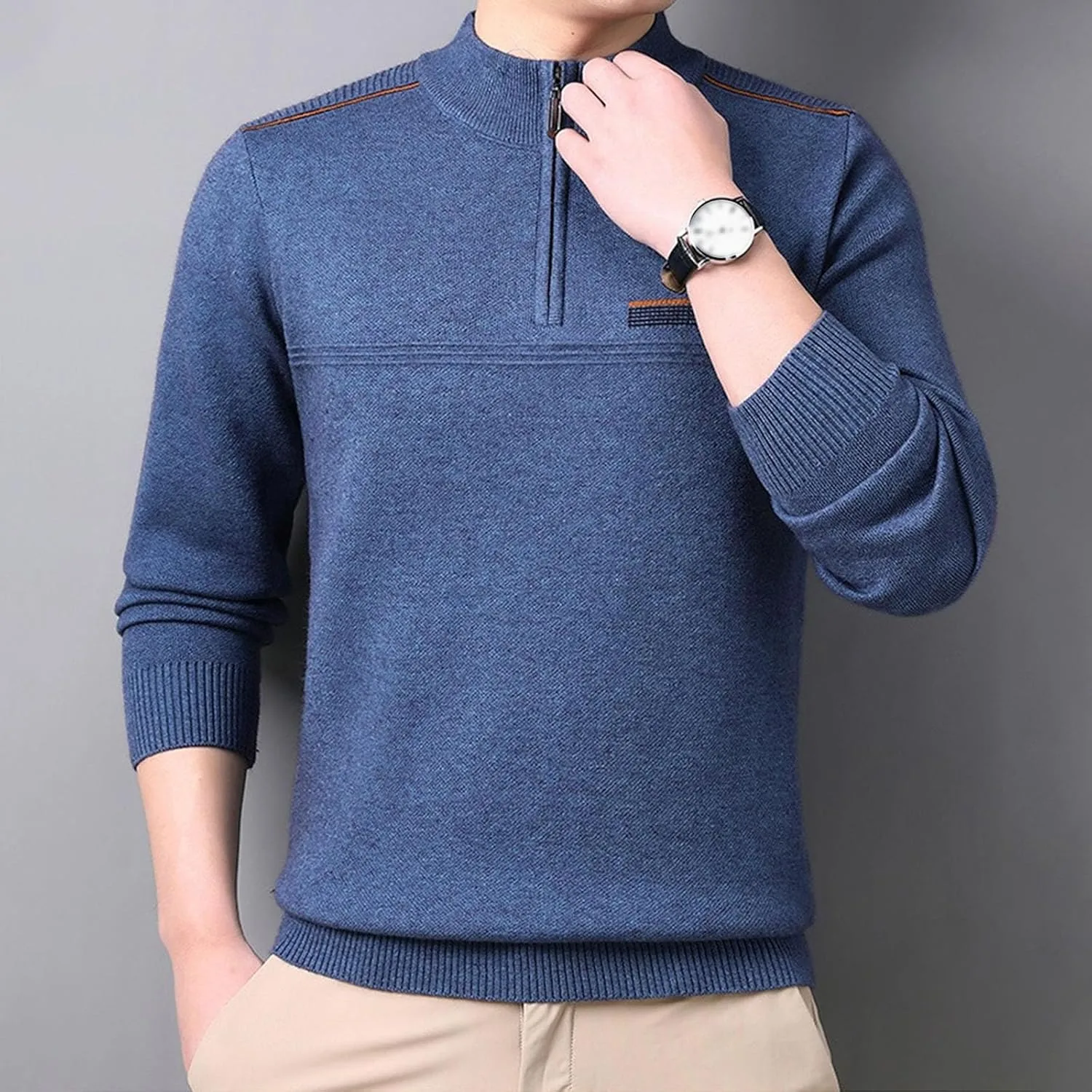 Изысканный дизайн цвета «угольно-серый меланж» — универсальная модель серо-угольного меланжевого цвета с современным воротником на молнии до четвертной длины и контрастными ребристыми вставками на плечах создает элегантный многослойный образ. Высококачественная трикотажная ткань средней плотности — изготовлена из мягкого, дышащего трикотажа, обеспечивающего оптимальное тепло без лишнего объема, идеально подходит для комфортной прохладной погоды. Отличительная деталь из коричневой искусственной кожи — застежка-молния из натуральной коричневой искусственной кожи добавляет нотку деревенской элегантности к функциональной передней молнии. Стратегически продуманная ребристая отделка — усиленная ребристая трикотажная ткань на воротнике, манжетах и плечевых панелях обеспечивает повышенную износостойкость и приталенный крой. Универсальный современный крой — модель с современным прямым низом, которая легко сочетается с джинсами, чиносами или брюками, подходя как для повседневной, так и для элегантной повседневной одежды.