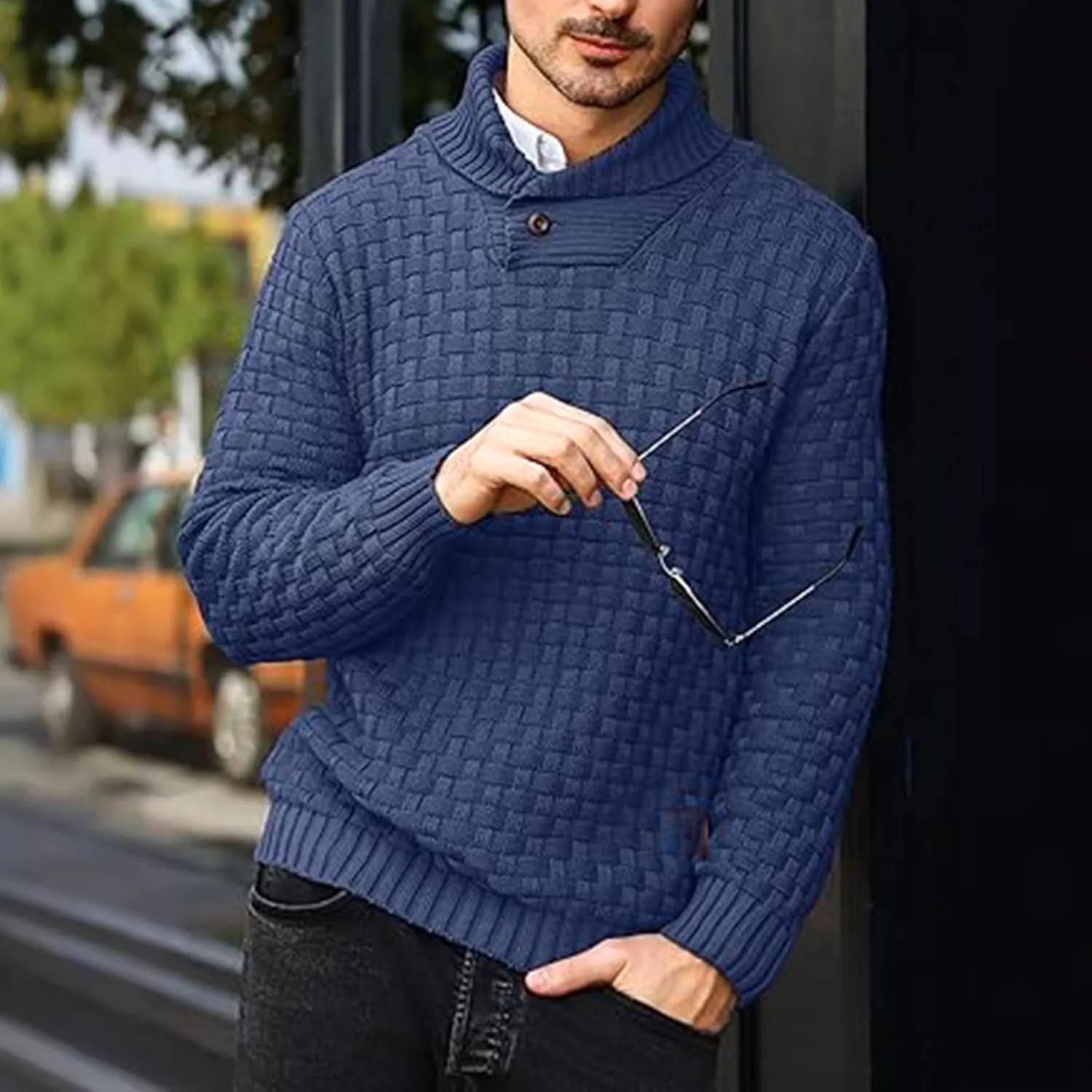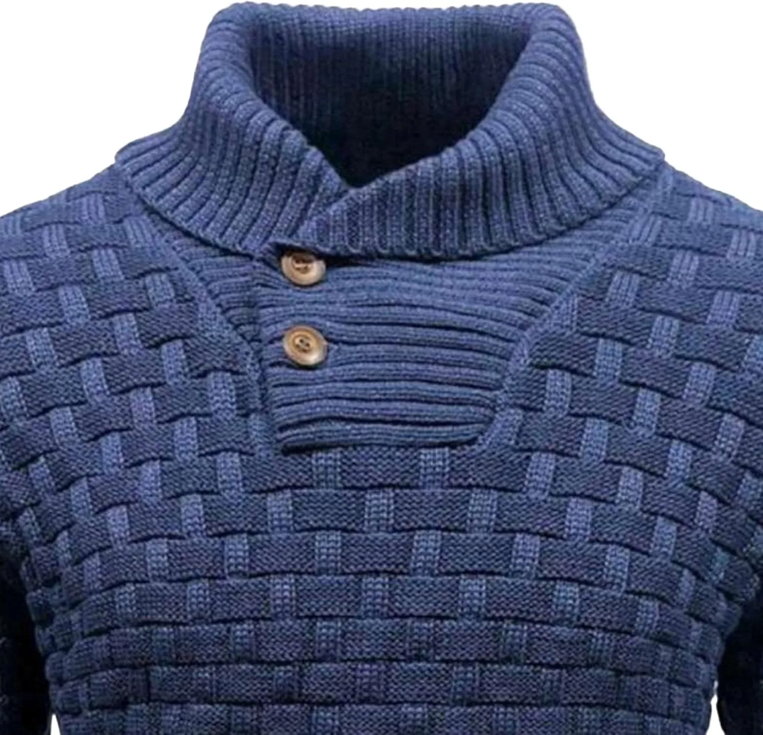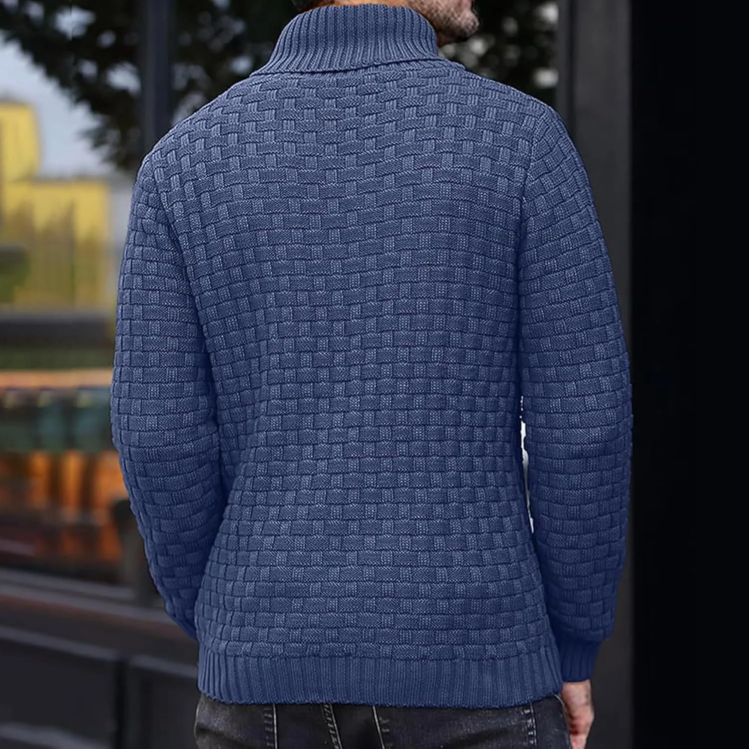 Свитер с высоким воротником: Этот мужской свитер с высоким воротником имеет высокий воротник и две декоративные пуговицы, обеспечивающие регулируемую теплоизоляцию и элегантный вид. Ребристый воротник, манжеты и нижний край обеспечивают плотное прилегание и комфорт.