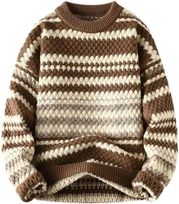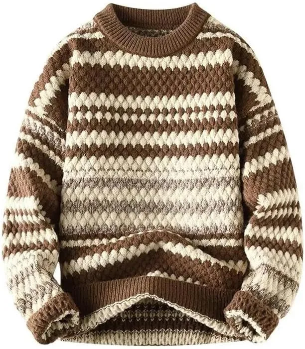 Этот пуловер с круглым вырезом, в стиле колор-блок, вязаный, с длинными рукавами, винтажным принтом, в повседневном и свободном стиле.