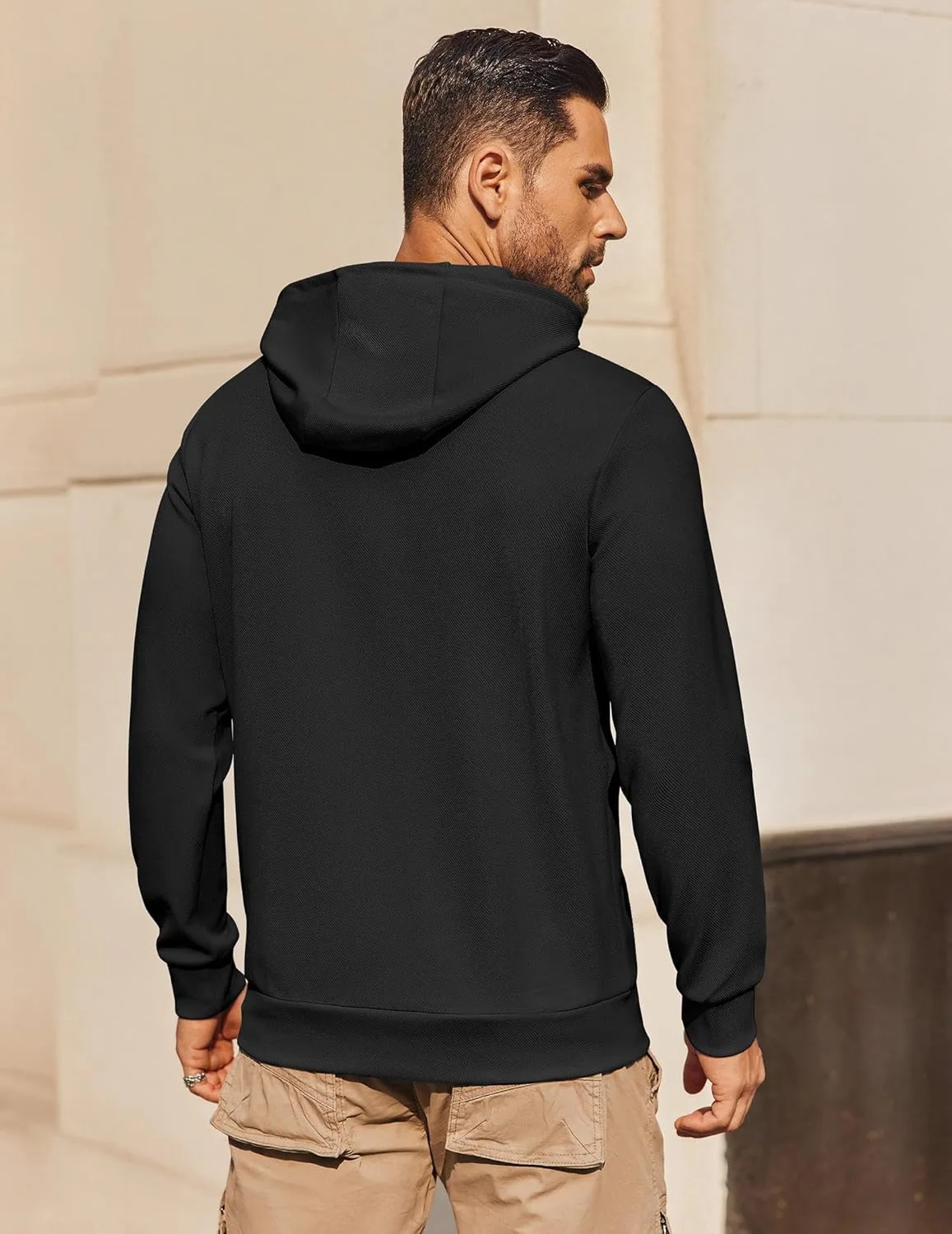【Простой уход】Упростите свой стиль с нашей мужской толстовкой, созданной для простого ухода. Просто постирайте ее в стиральной машине, и она готова к использованию – никаких специальных процедур не требуется. Воспользуйтесь нашей таблицей размеров, чтобы подобрать идеальный размер.