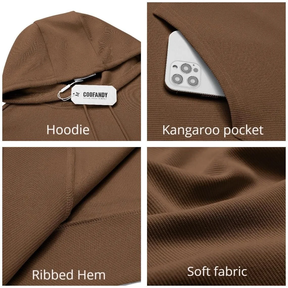 Толстовка с капюшоном Coofandy мужская, с карманом