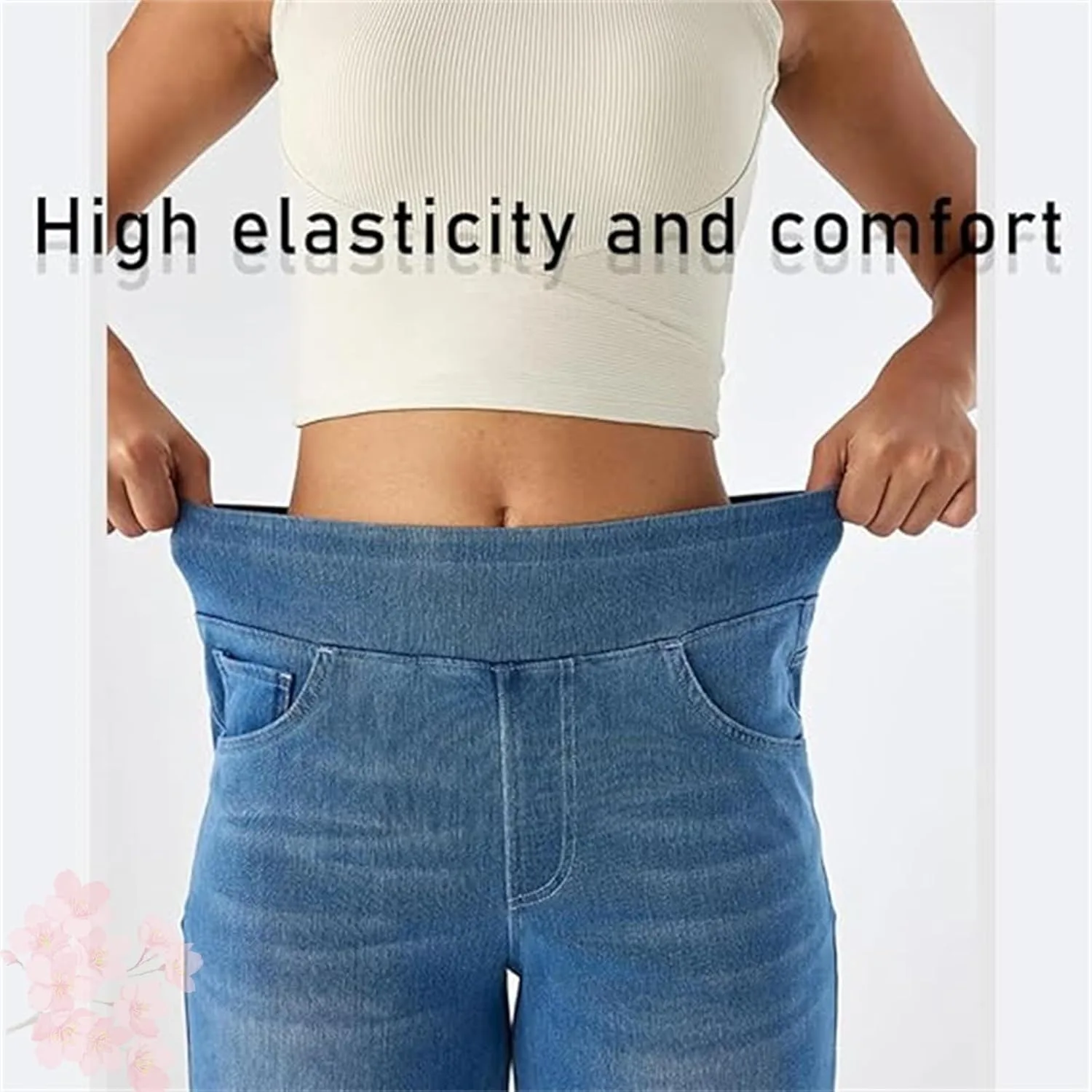 【Ткань】Женские джеггинсы с широкими штанинами изготовлены из эластичной джинсовой ткани, растягивающейся в четырех направлениях, что обеспечивает гибкость и износостойкость. Эти джинсы с застежкой-молнией позволят вам чувствовать себя свободно в любом положении сидя или приседая.