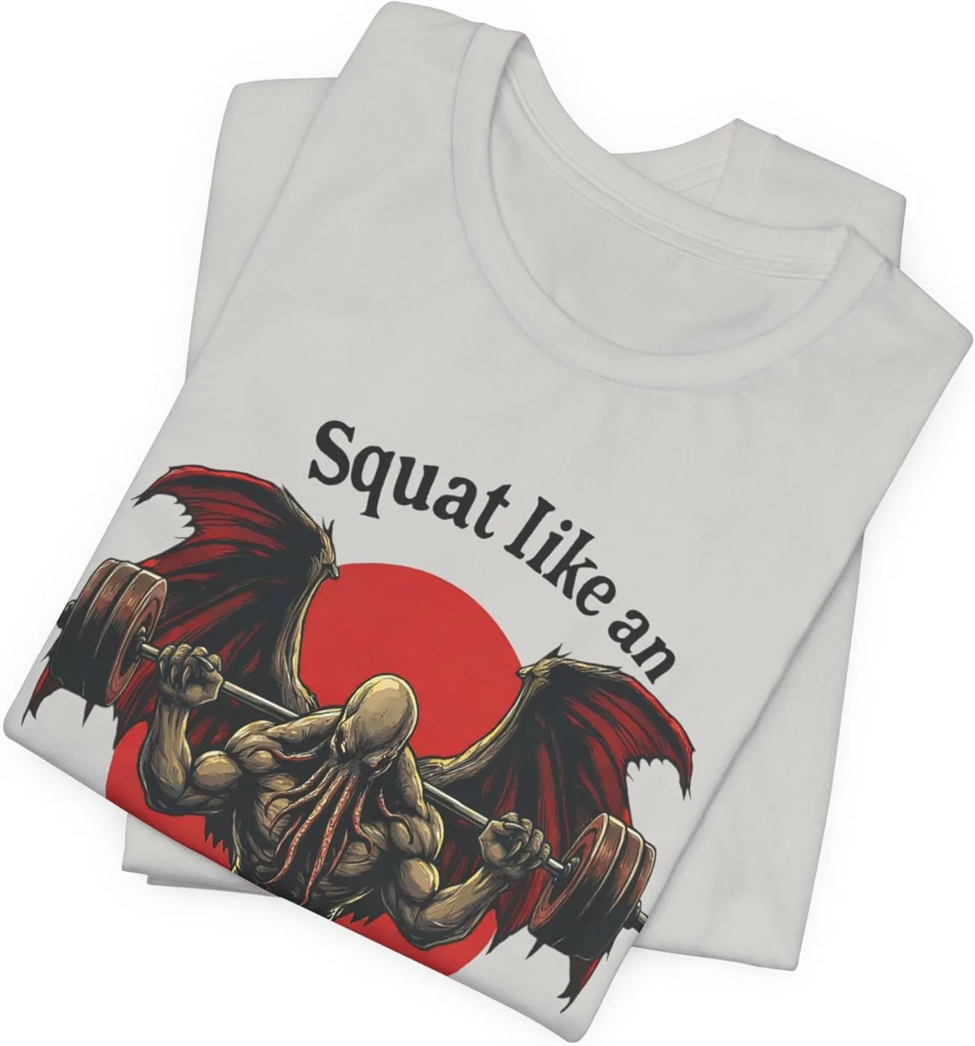 Mythic Strength Design — Графическое изображение приседаний в стиле Ктулху для тяжелоатлетов, тренирующихся за пределами человеческих возможностей.