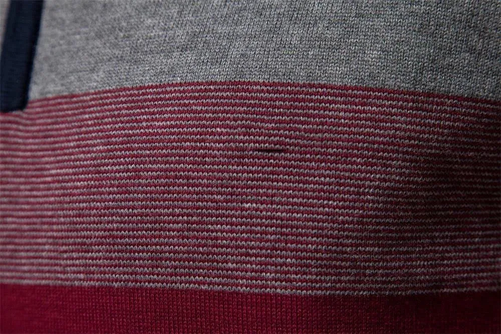 Этот мужской вязаный свитер — практичная и качественная вещь, которая обязательно должна быть в вашем зимнем гардеробе. Он искусно сочетает в себе классические ретро-полоски, изысканную вышивку с буквами и капюшон, чтобы打破 монотонность традиционных свитеров и привнести в них молодежный и энергичный уличный стиль. Свитер изготовлен из высококачественной смесовой шерстяной ткани, мягкой и приятной для кожи. Утолщенная вязка обеспечивает превосходные теплоизоляционные свойства и эффективно защищает от сильного холода. Будь то повседневный спортивный стиль пуловера с капюшоном или аккуратный и простой стиль с воротником-стойкой и застежкой-молнией, он удовлетворит потребности в одежде для разных случаев и легко впишется в зимний образ, сочетающий тепло и стиль.