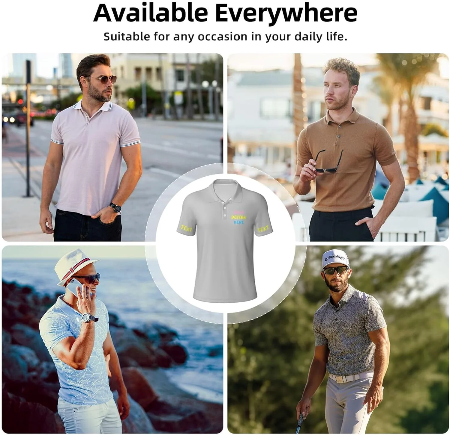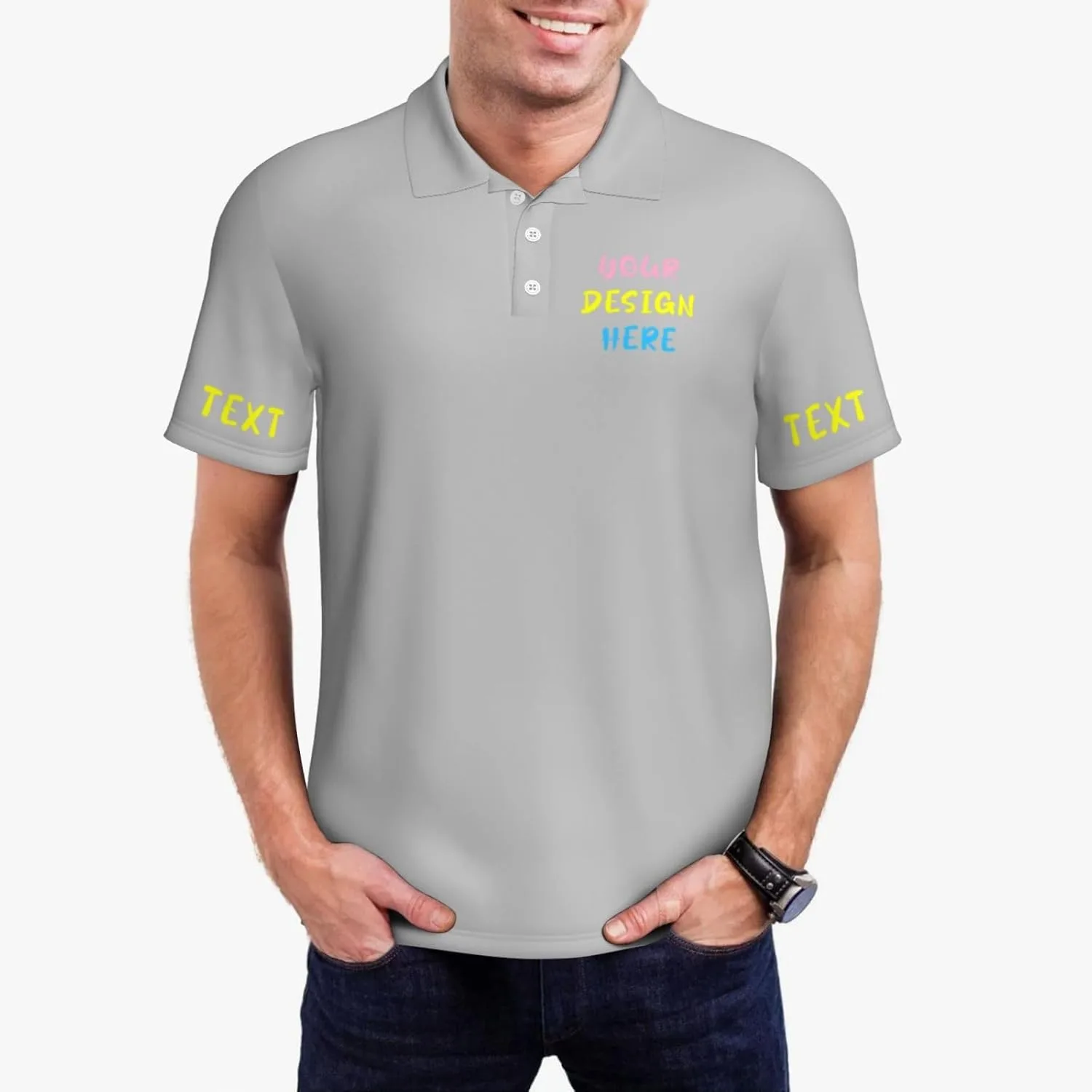 Футболки для гольфа на заказ — выберите свой размер, шрифт и цвет, загрузите свои фотографии, пожалуйста, отрегулируйте размер изображения или текста. Качественный материал - полиэстер Особенности продукта: Ткань мужских поло на заказ мягкая, удобная и дышащая. Подходящие случаи: Мужские рубашки-поло подходят не только для повседневной носки, но и для сочетания с формальной одеждой, будь то для встреч, отдыха или деловых мероприятий. Отдел продаж и обслуживания — Если у вас возникнут какие-либо вопросы о наших рубашках для гольфа, пожалуйста, свяжитесь с нами. Наша служба поддержки клиентов ответит в течение 12 часов.